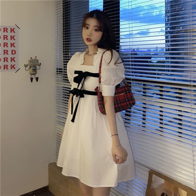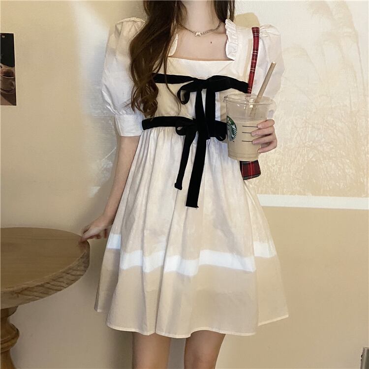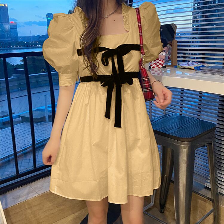 ✞ ドレス ワンピースサマーリボンスリーブ ランタンスリーブ スウィート 夏物 スクウェア ✞ゴスロリ SM ミリ 甘ロリ クラロリ 和ロリ エレガント 黒ロリ 姫ロリ 華ロリ BB-BB3767188