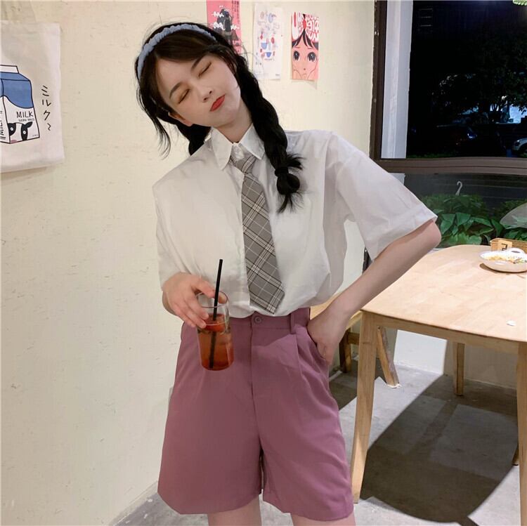 色:白いシャツ+ネクタイ,紫色のシャツ+ネクタイ,ベージュショーツワンピース,太郎ショーツワンピース