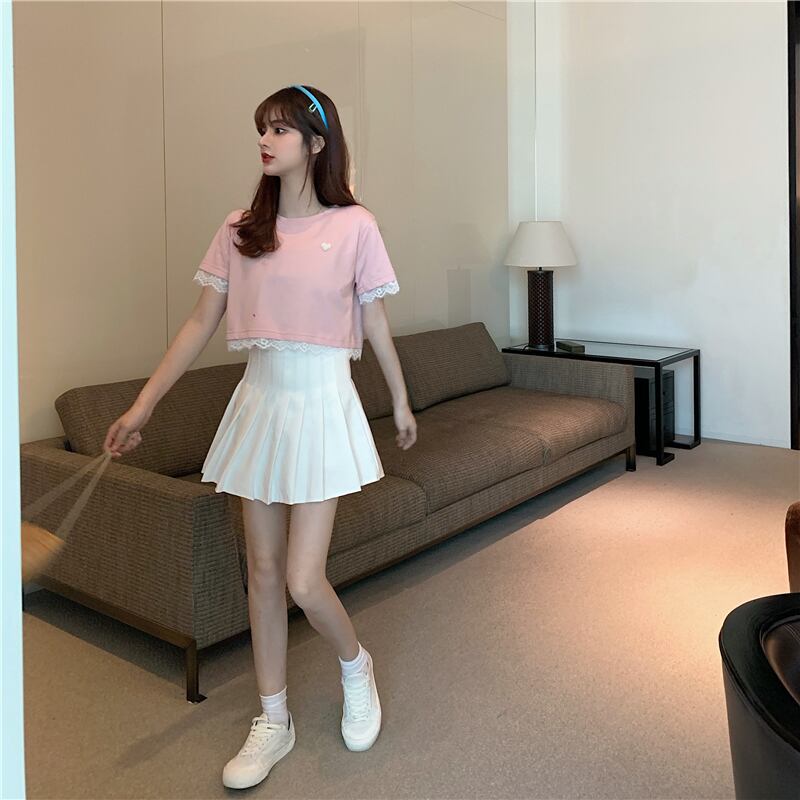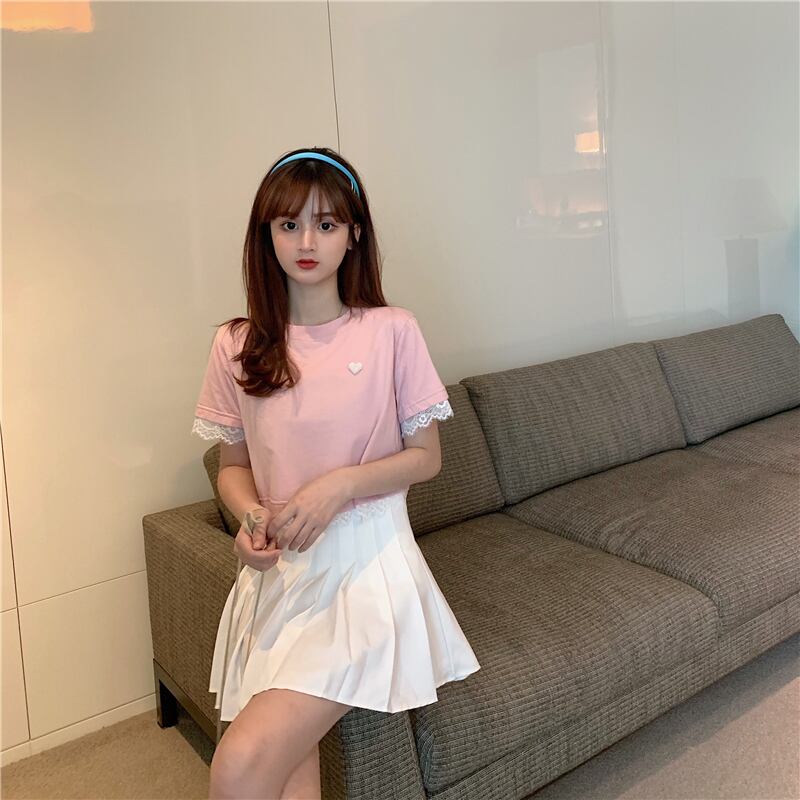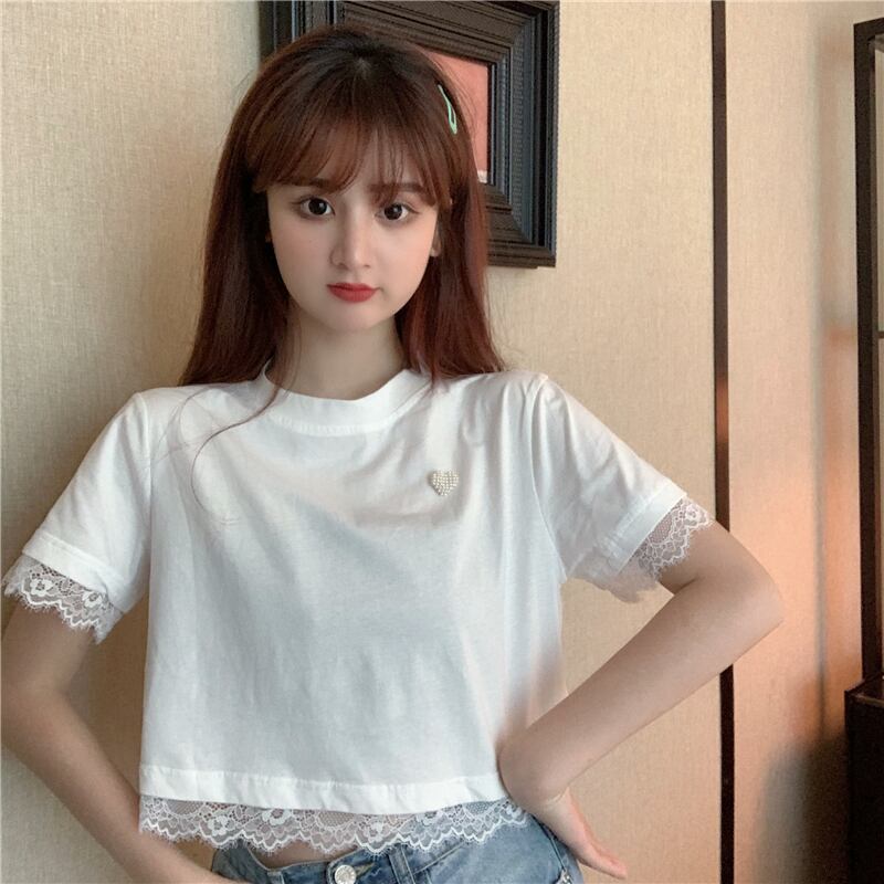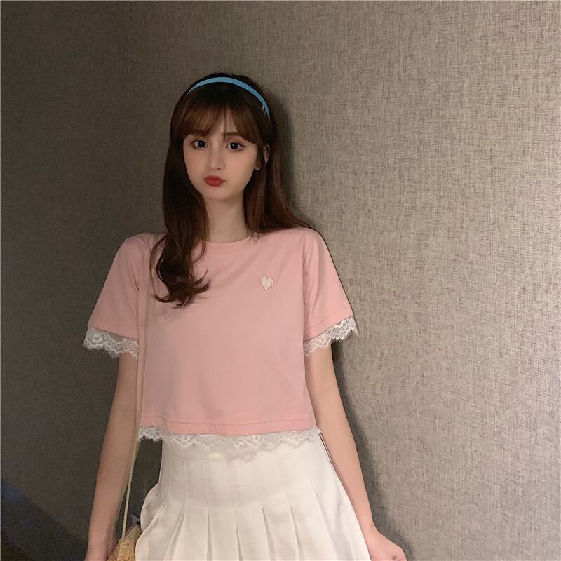 ✞ サマーラウンドネックレースショートTシャツ 大人女子☆ スウィート 夏物 ステッチ ✞ゴスロリ SM ミリ 甘ロリ クラロリ 和ロリ エレガント 黒ロリ 姫ロリ 華ロリ BB-BB4879061