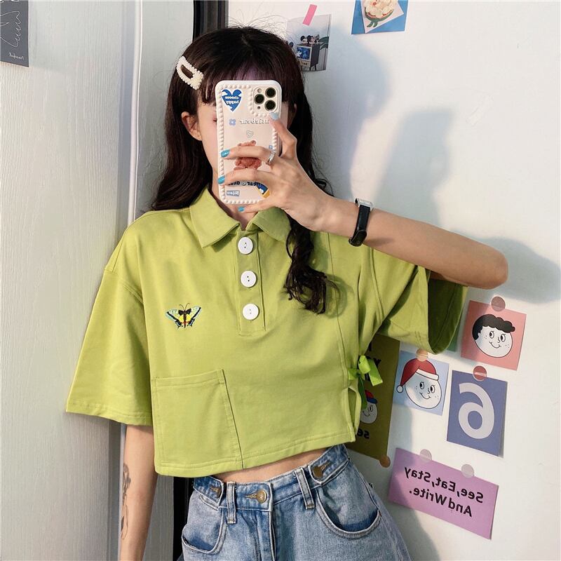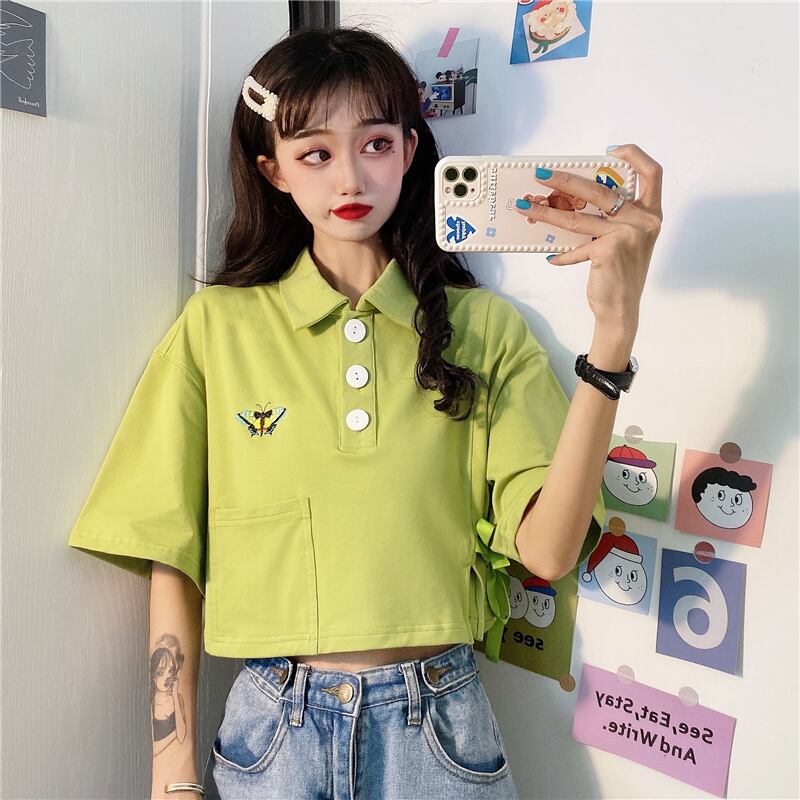 ✞ ショートTシャツ Butterflyデザイン カジュアルトップス 刺繍 ✞ゴスロリ SM ミリ 甘ロリ クラロリ 和ロリ エレガント 黒ロリ 姫ロリ 華ロリ BB-BB4041288