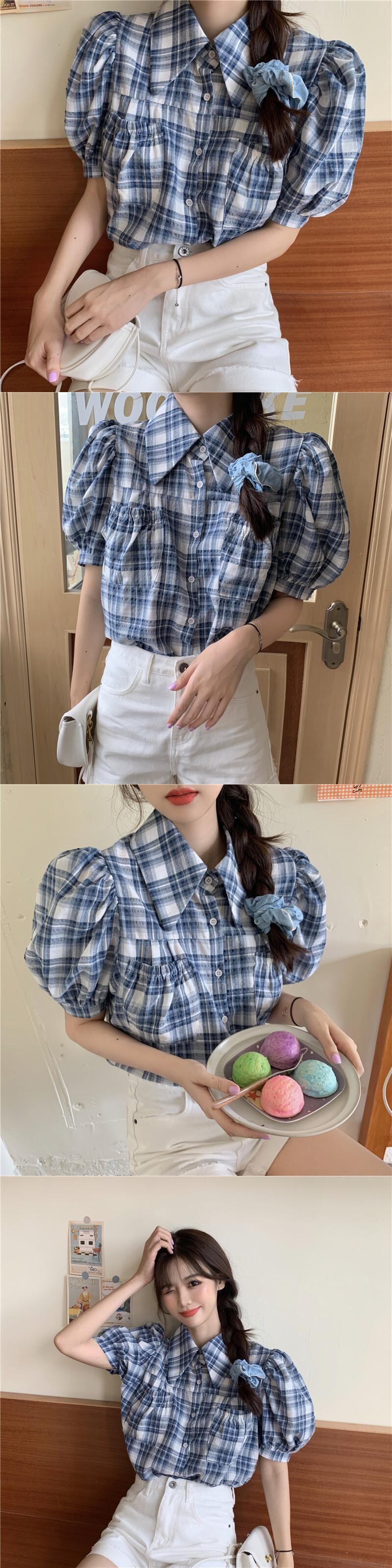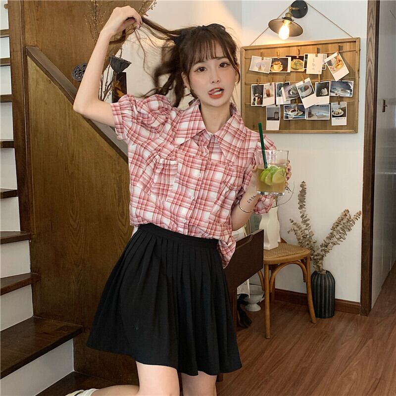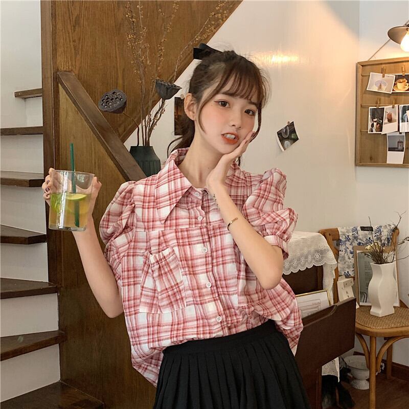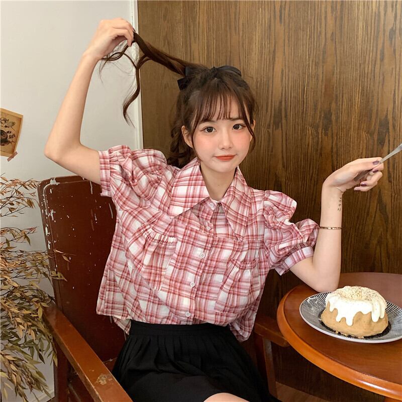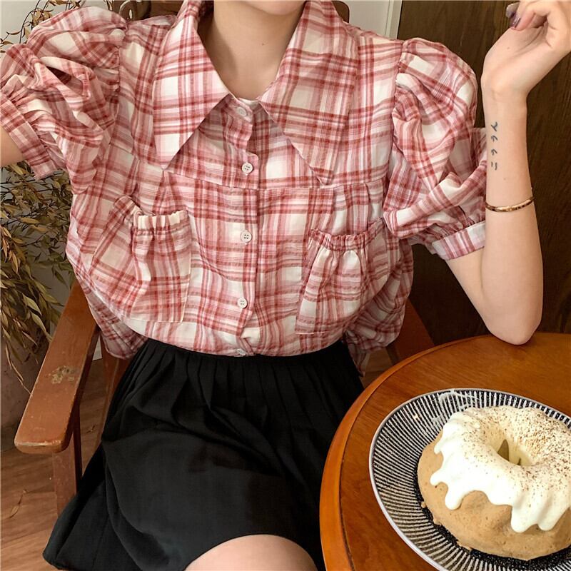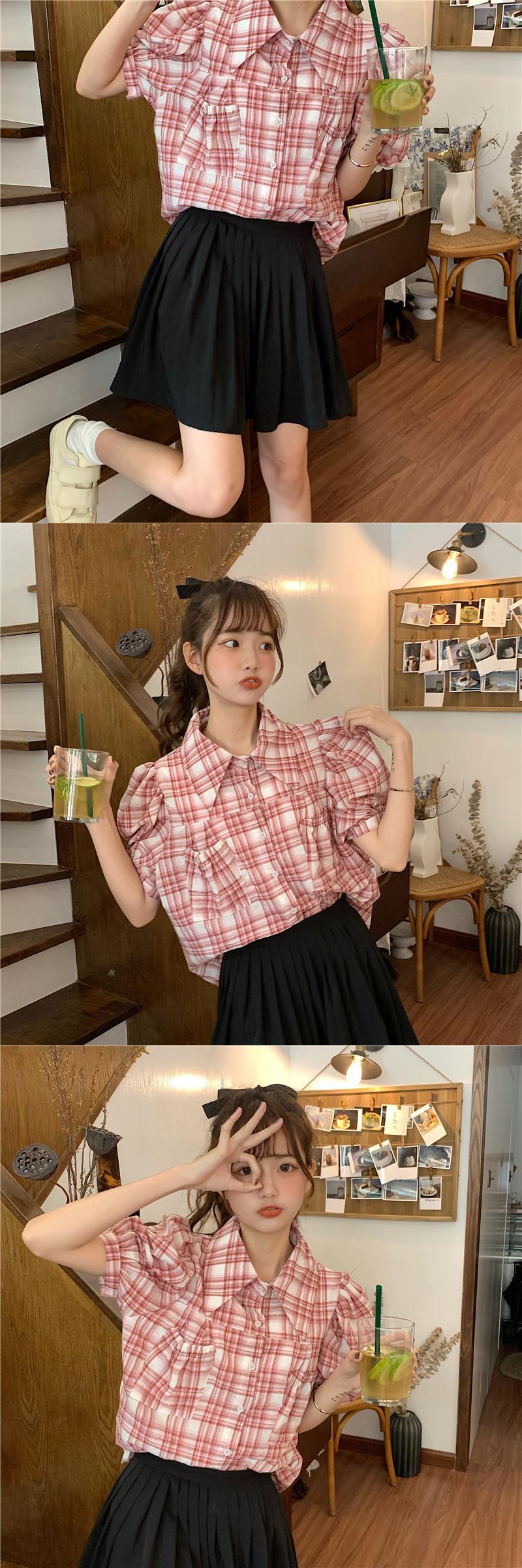 ✞ チェック柄シャツブラウススタンダードスリーブポケットトップス レトロ ステッチ ✞ゴスロリ SM ミリ 甘ロリ クラロリ 和ロリ エレガント 黒ロリ 姫ロリ 華ロリ BB-BB1481835