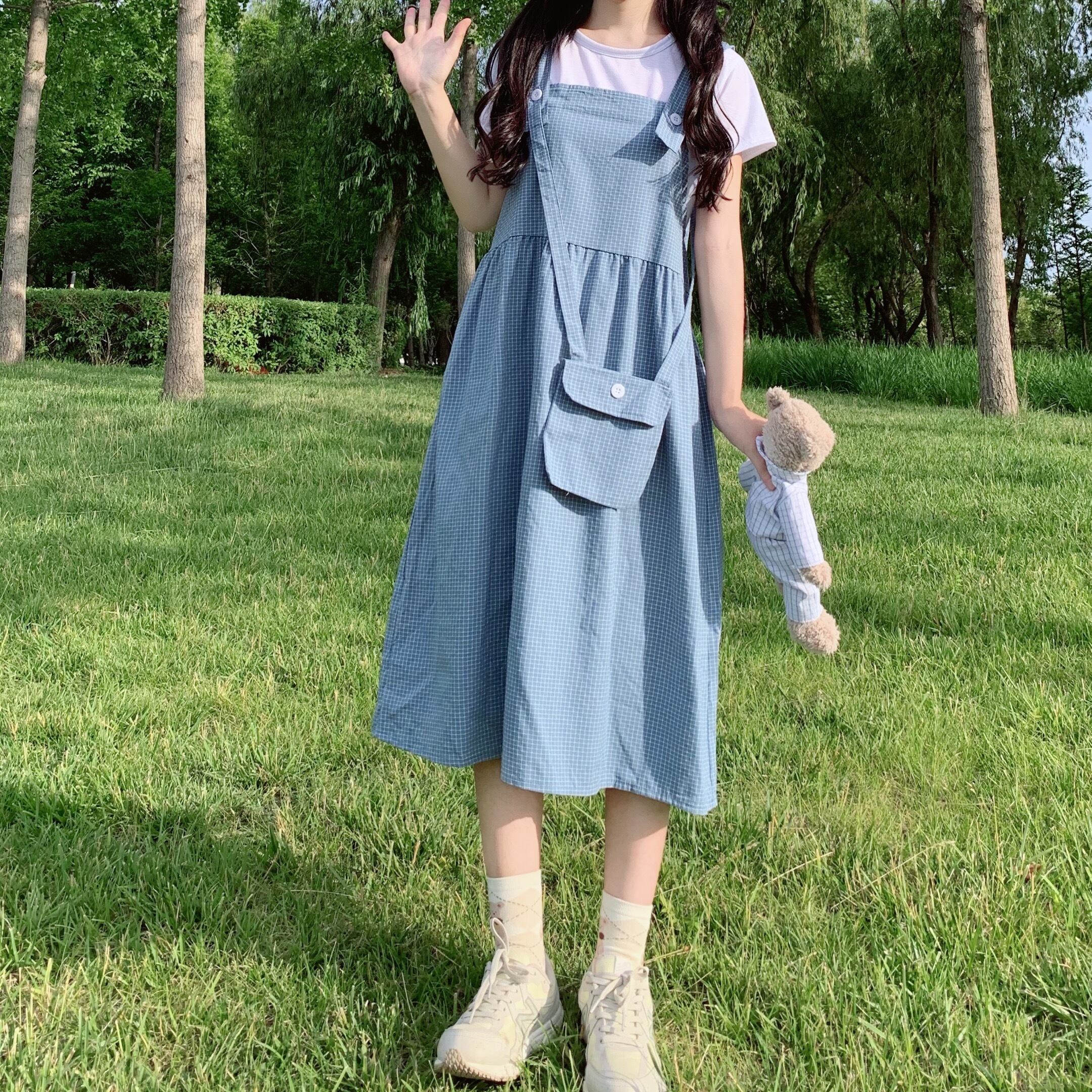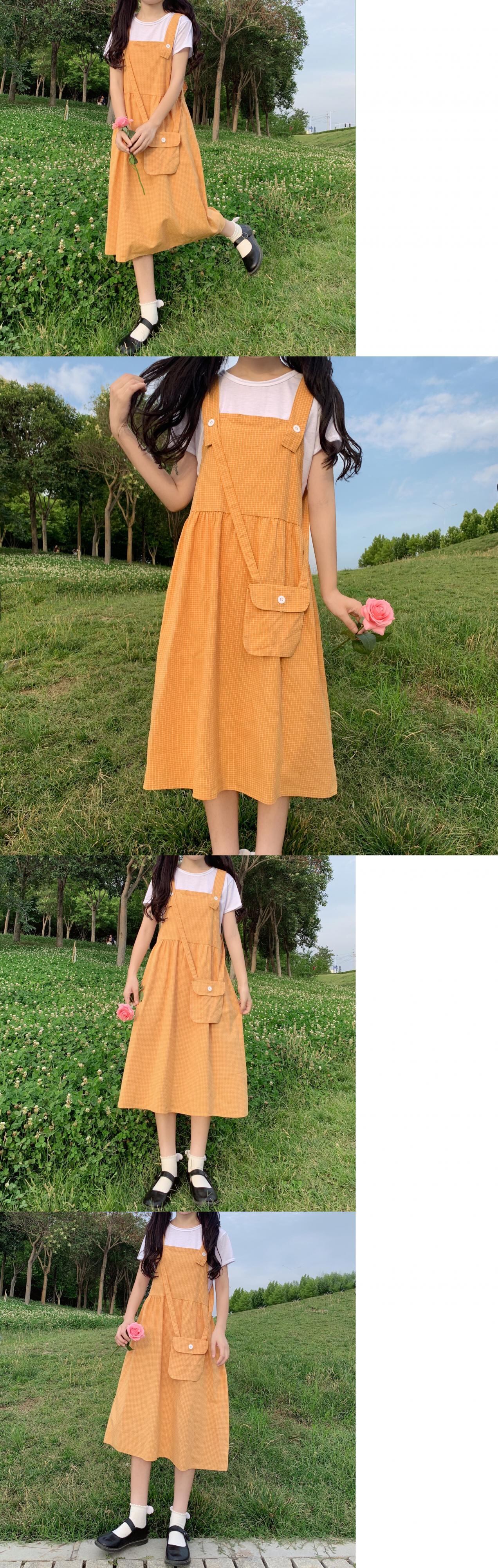 色:ホワイトトップ,オレンジのサスペンダースカートワンピース,ブルーサスペンダースカートワンピース