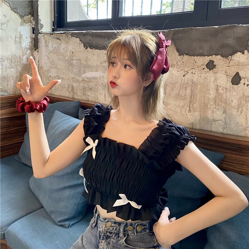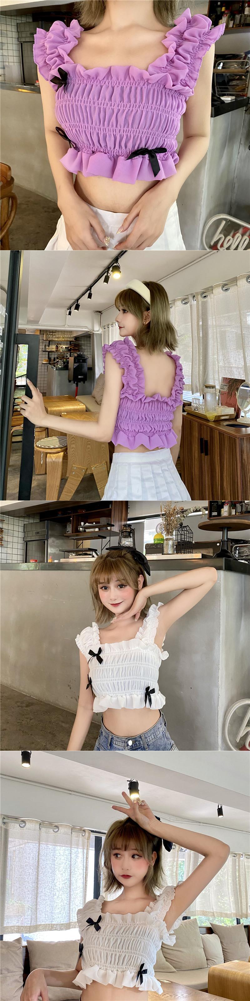 ✞ キャミソールショートノースリーブシャツブラウストップス 大人女子☆ リボン スウィート かわいい ✞ゴスロリ SM ミリ 甘ロリ クラロリ 和ロリ エレガント 黒ロリ 姫ロリ 華ロリ BB-BB4236130