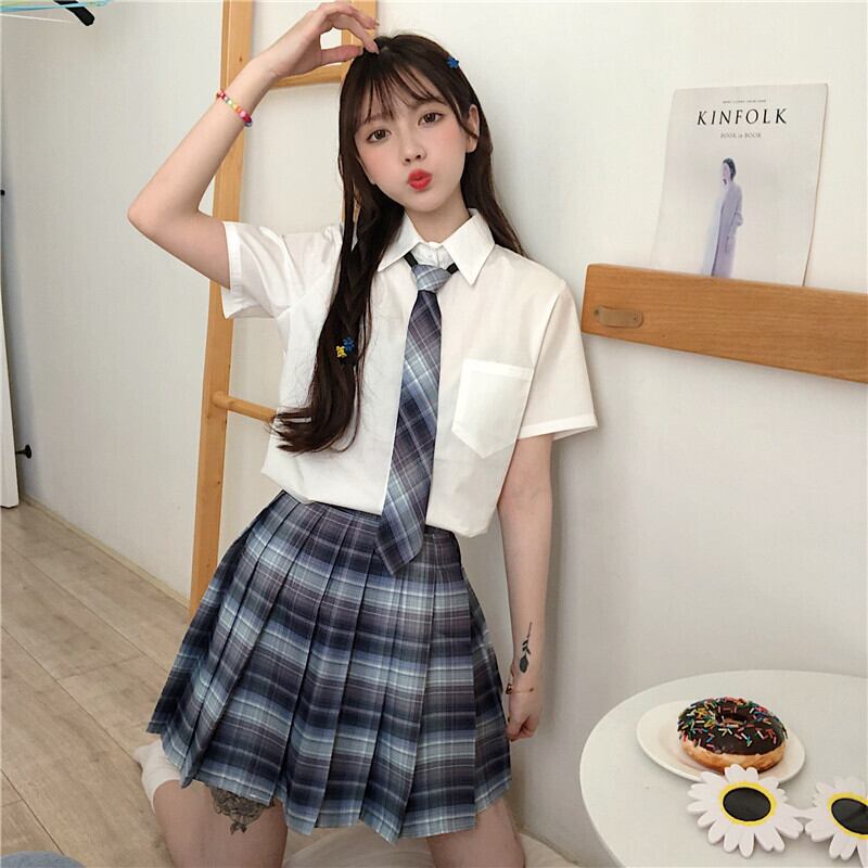 色:白シャツ+ネクタイワンピース,チェック柄スカートワンピース