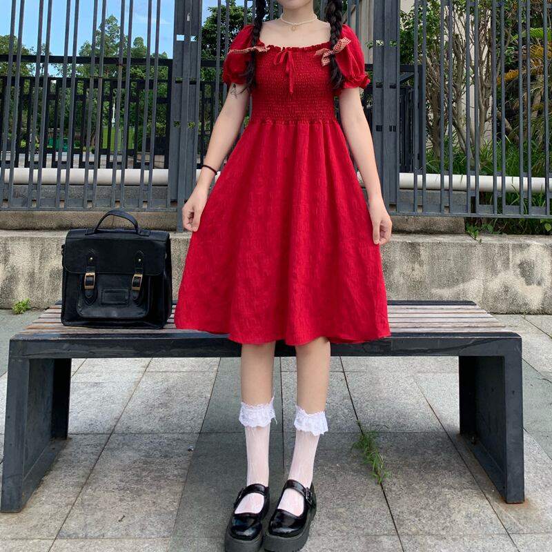 ✞ スタンダードプリーツスリムリボンスリーブ レトロ スウィート スクウェア ステッチ ✞ゴスロリ SM ミリ 甘ロリ クラロリ 和ロリ エレガント 黒ロリ 姫ロリ 華ロリ BB-BB3555945