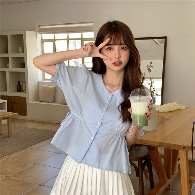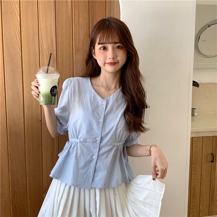 ✞ シャツブラウスサイドストラップ ウエストすっきり☆着痩せVネック大人女子☆ スウィート ガーリー ✞ゴスロリ SM ミリ 甘ロリ クラロリ 和ロリ エレガント 黒ロリ 姫ロリ 華ロリ BB-BB1520751