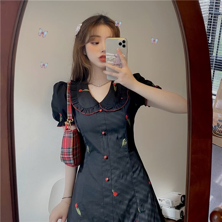 ✞ ダーク花柄刺繍スリム フラワーデザイン ✞ゴスロリ SM ミリ 甘ロリ クラロリ 和ロリ エレガント 黒ロリ 姫ロリ 華ロリ BB-BB1867001