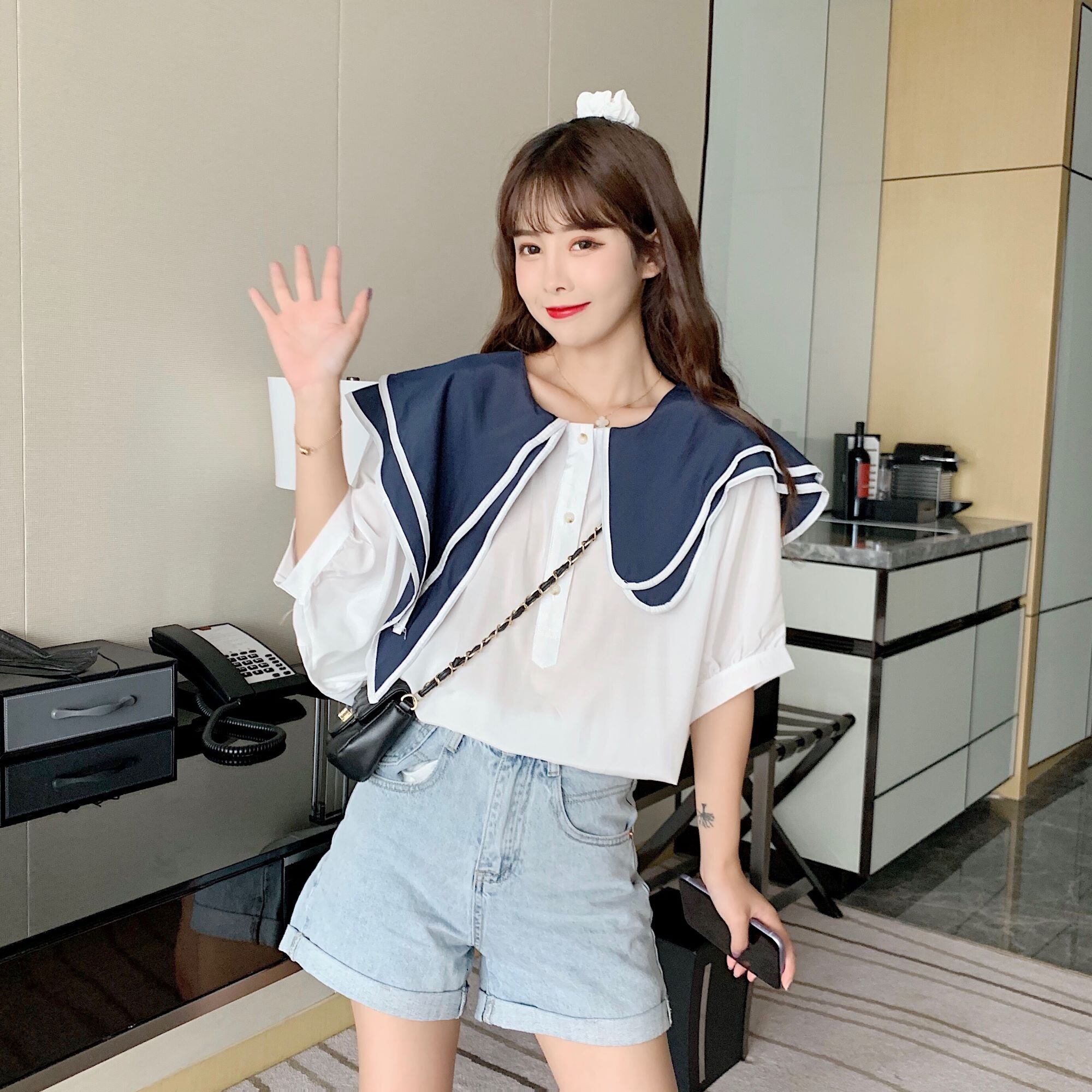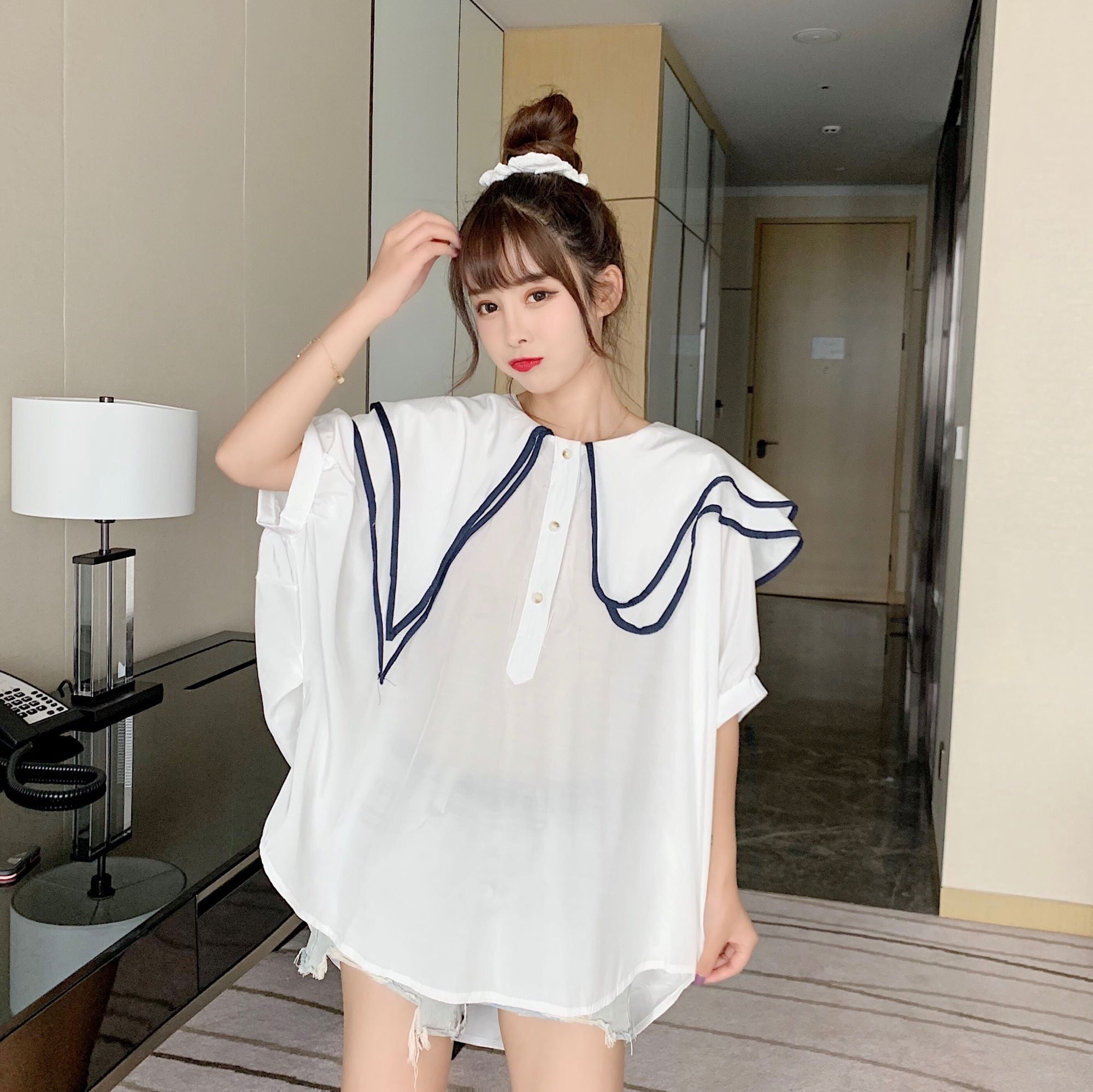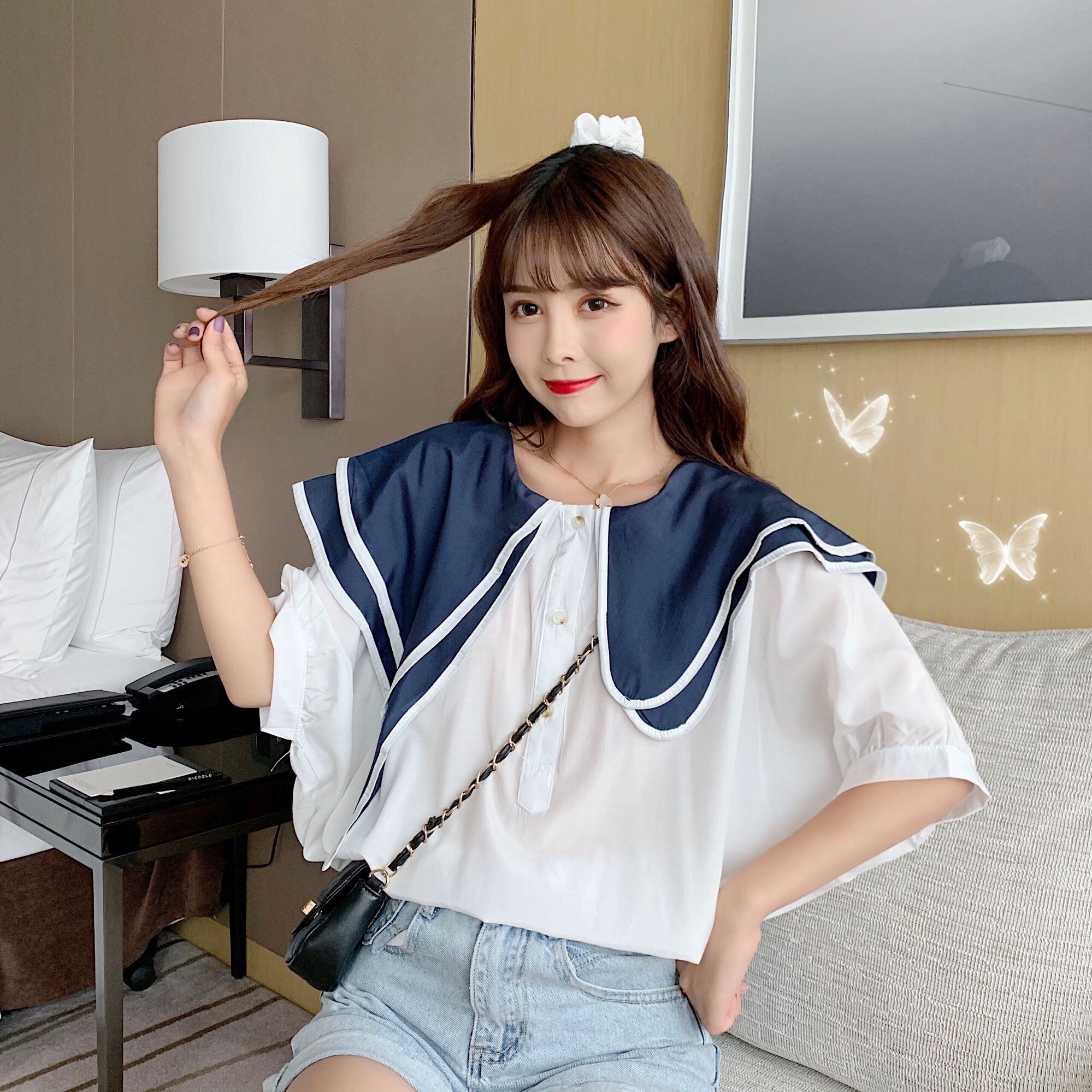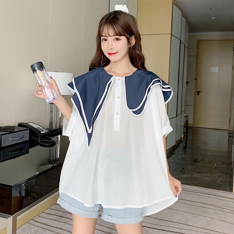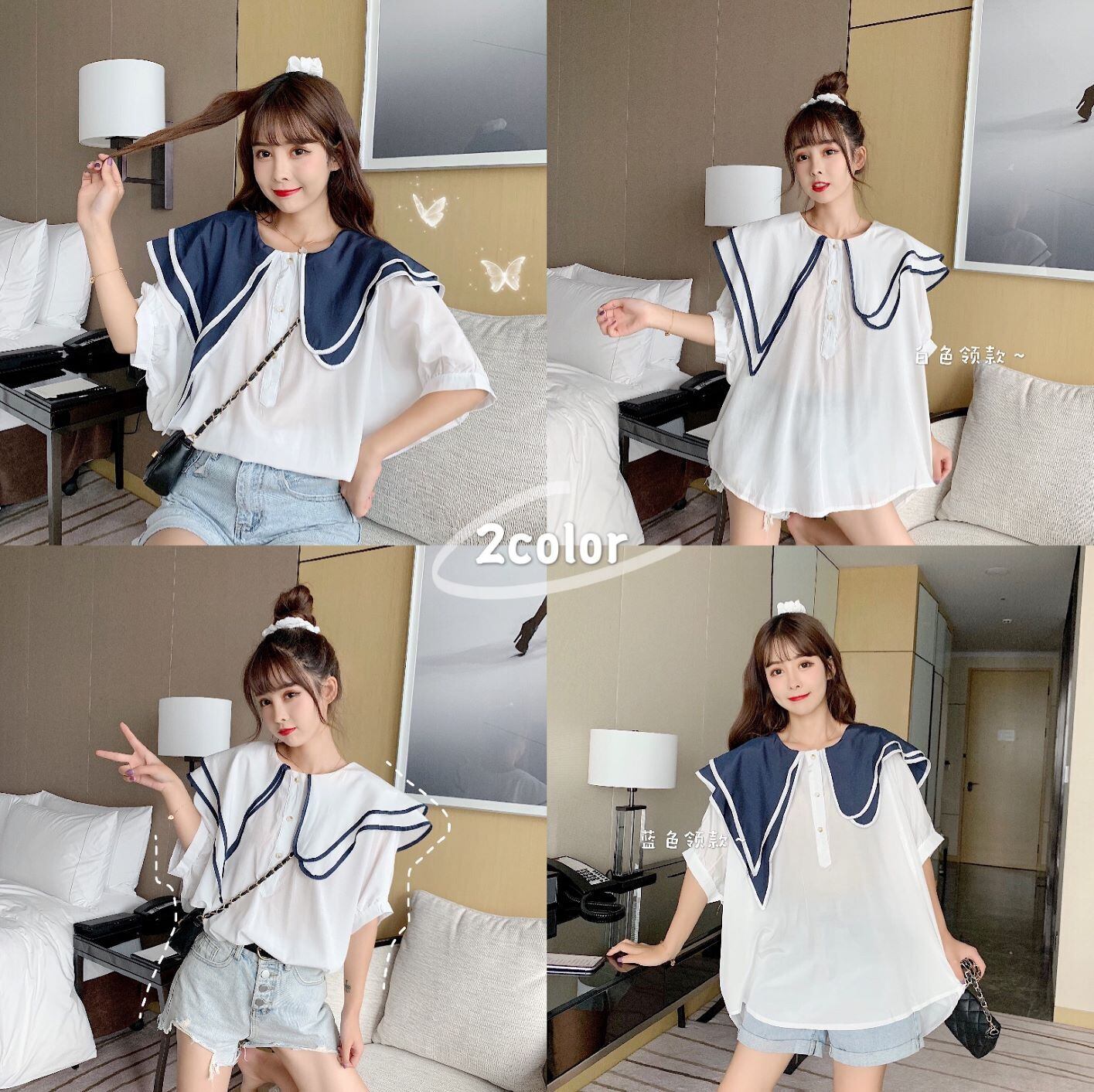 ✞ スリーブ♥カワイイ♥カラーダブル半袖シャツブラウス大人女子☆ ショート 半袖スリーブ スウィート ステッチ ✞ゴスロリ SM ミリ 甘ロリ クラロリ 和ロリ エレガント 黒ロリ 姫ロリ 華ロリ BB-BB0748343