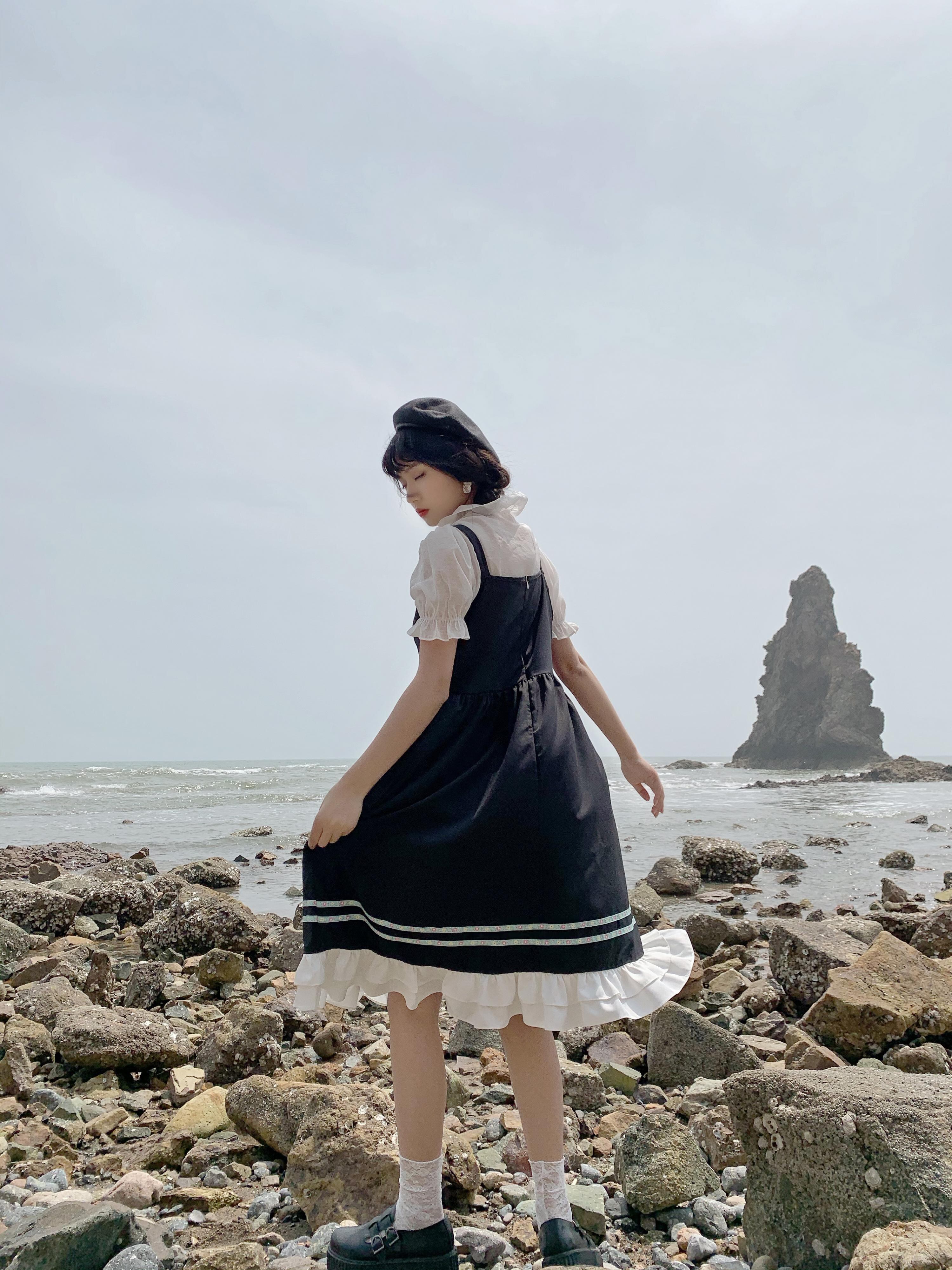 ✞ スカート きれいめ☆ダークブラックノースリーブ スウィート ガーリー ステッチ ✞ゴスロリ SM ミリ 甘ロリ クラロリ 和ロリ エレガント 黒ロリ 姫ロリ 華ロリ BB-BB3603928