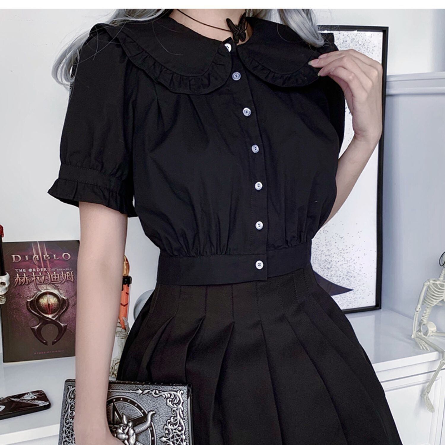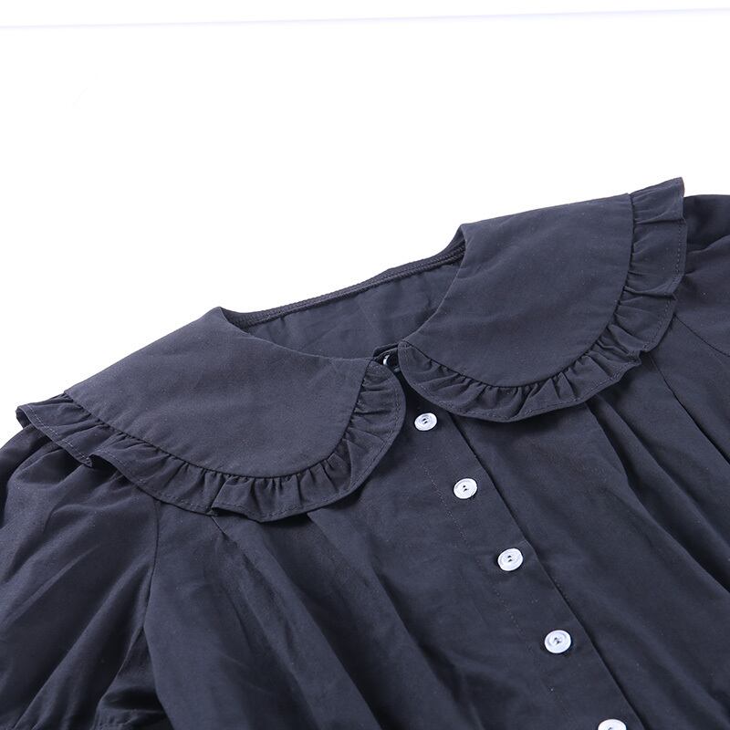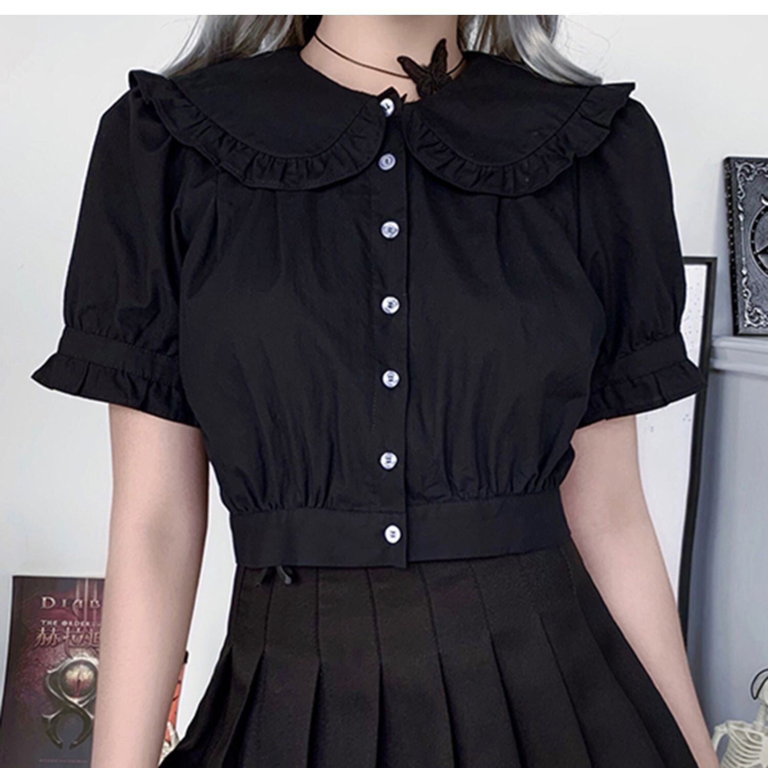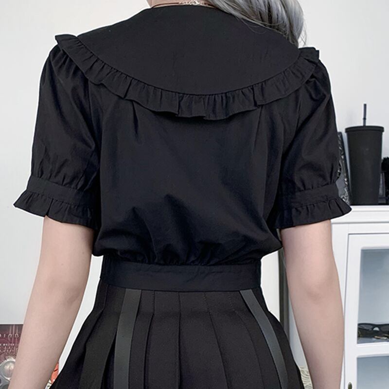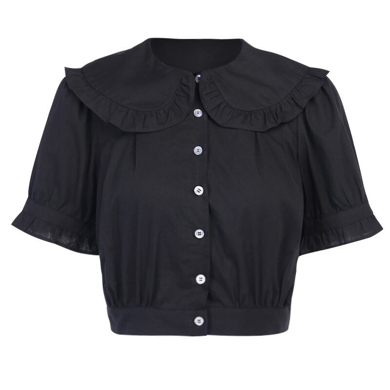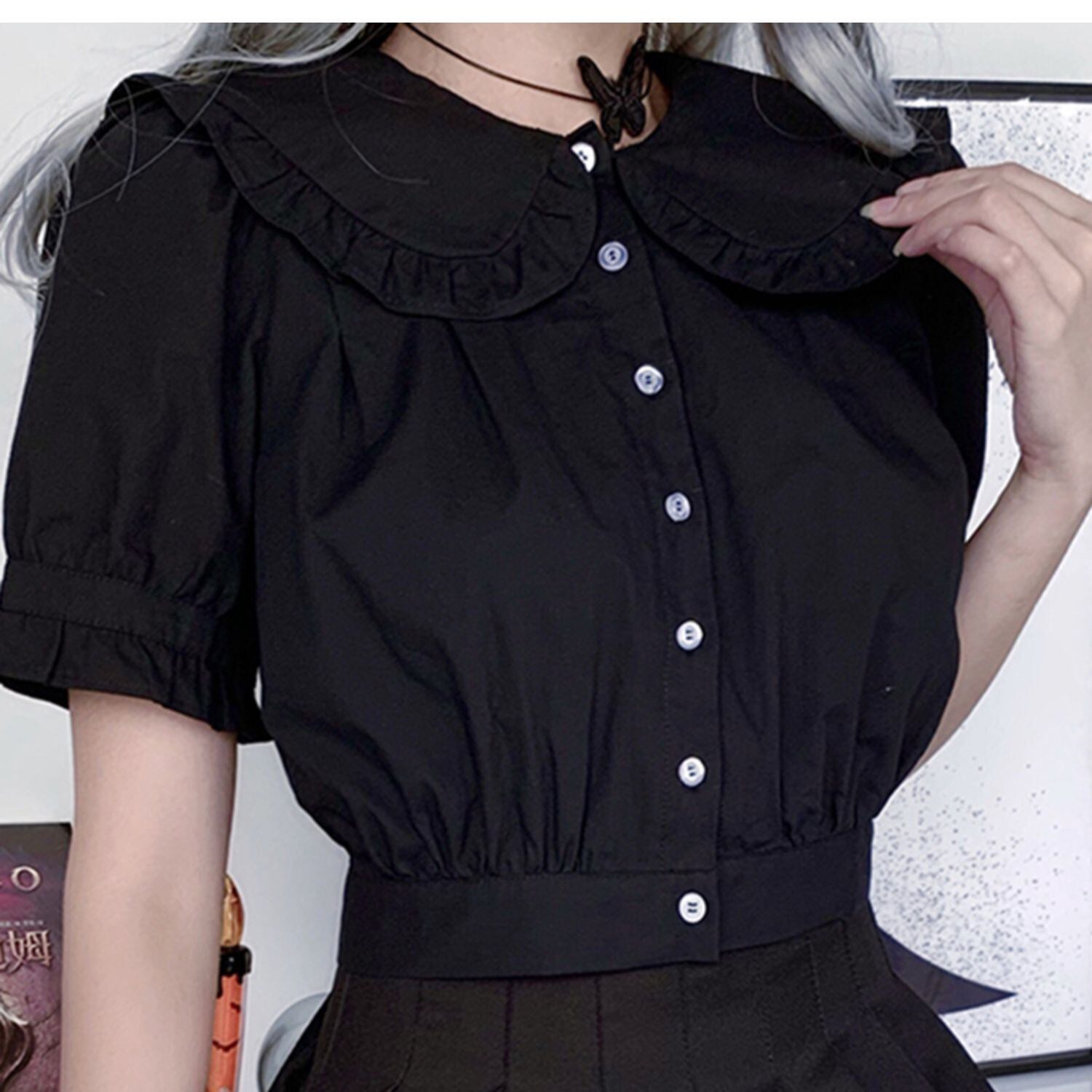 ✞✝✞ 黒ダークネス丸襟シャツブラウス♥カワイイ♥ホワイト ショートTシャツ レトロ ✞✝✞ ゴスロリ SM ミリ 甘ロリ クラロリ 和ロリ エレガント 黒ロリ 姫ロリ 華ロリ AA-AA7167746