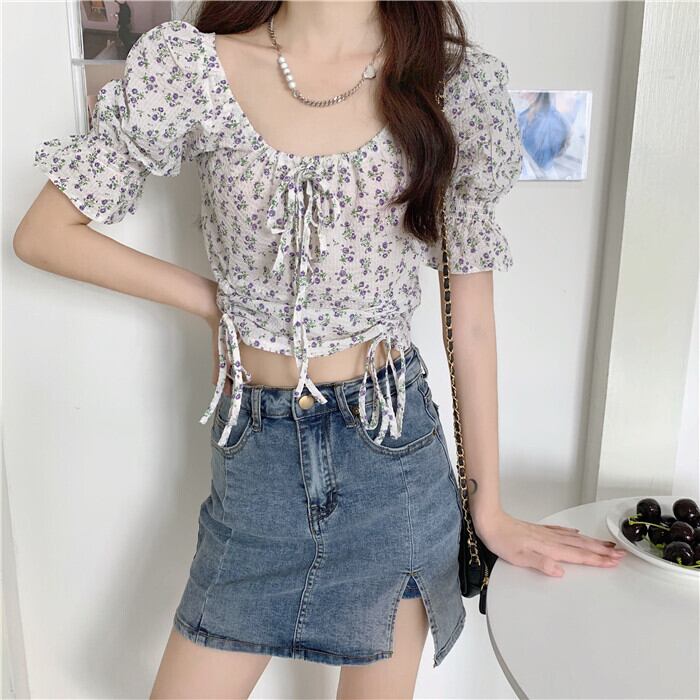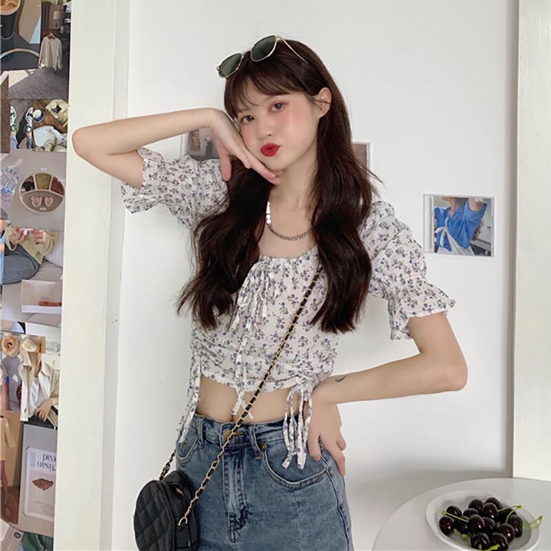 ✞ シフォンシャツブラウス花柄スリーブスリムプリーツレースショート スウィート スクウェア ✞ゴスロリ SM ミリ 甘ロリ クラロリ 和ロリ エレガント 黒ロリ 姫ロリ 華ロリ BB-BB4325284