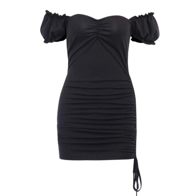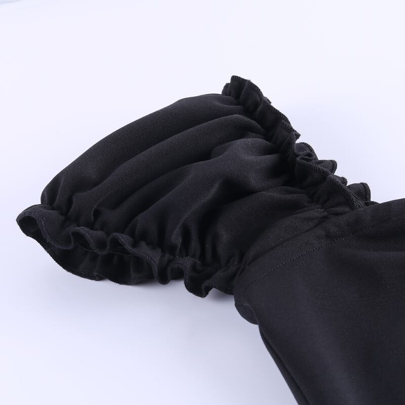 ✞ダークブラックスリーブタイトギャザーワンピ デコルテ ✞✝✞ ゴスロリ SM ミリ 甘ロリ クラロリ 和ロリ エレガント 黒ロリ 姫ロリ 華ロリ AA-AA3375087