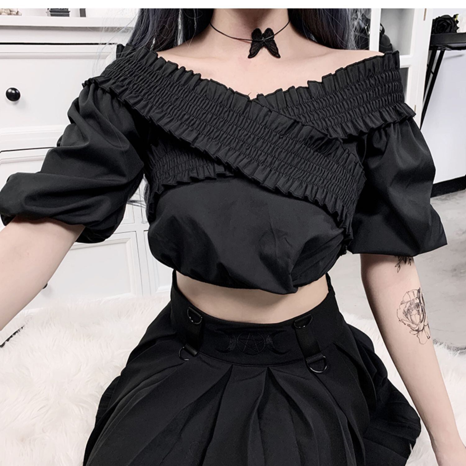 ✞✝✞ スリーブトップス ショート ✞✝✞ ゴスロリ SM ミリ 甘ロリ クラロリ 和ロリ エレガント 黒ロリ 姫ロリ 華ロリ AA-AA3903491