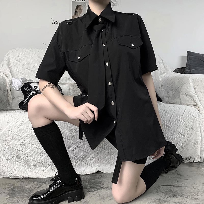 ✞✝✞ ダークネイビーきれいめ☆シャツブラウスブラックトップス ✞✝✞ ゴスロリ SM ミリ 甘ロリ クラロリ 和ロリ エレガント 黒ロリ 姫ロリ 華ロリ AA-AA5438675