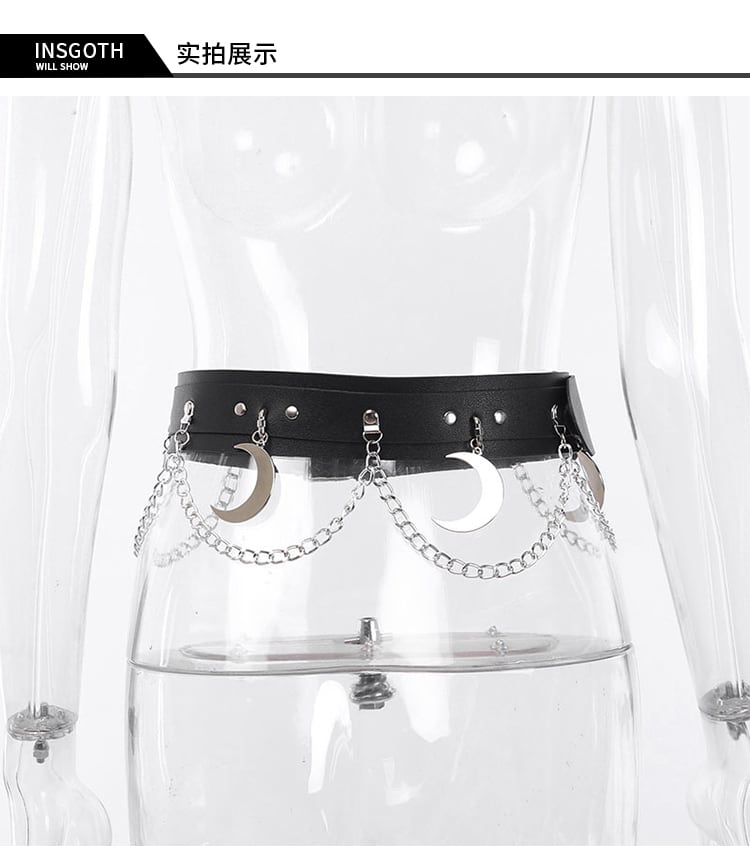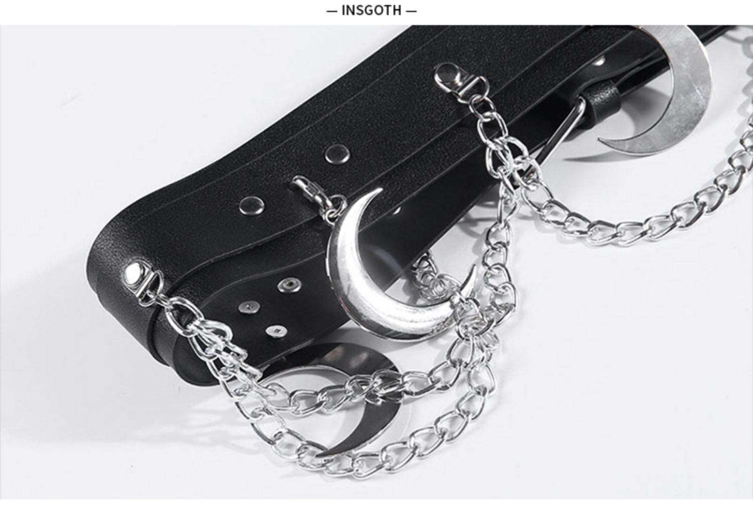 ✞✝✞ ダークストレッチウエストすっきり☆着痩せカラーチェーン ベルト スカート ショートパンツ エラスティック 伸縮 ハーネス ✞✝✞ ゴスロリ SM ミリ 甘ロリ クラロリ 和ロリ エレガント 黒ロリ 姫ロリ 華ロリ AA-AA4669853