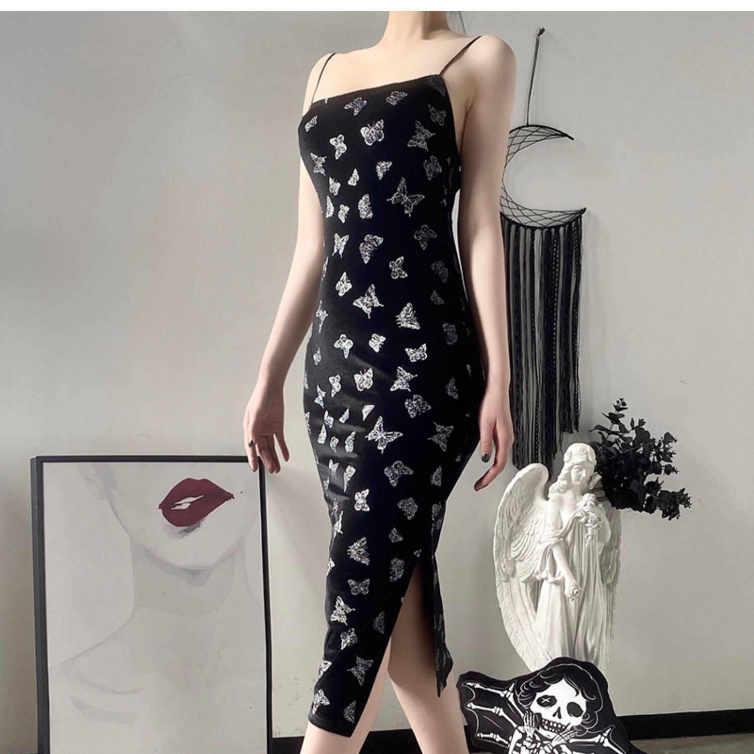 ✞✝✞ Butterflyデザイン プリント柄ウエストすっきり☆着痩せロングスカート ✞✝✞ ゴスロリ SM ミリ 甘ロリ クラロリ 和ロリ エレガント 黒ロリ 姫ロリ 華ロリ AA-AA4468852