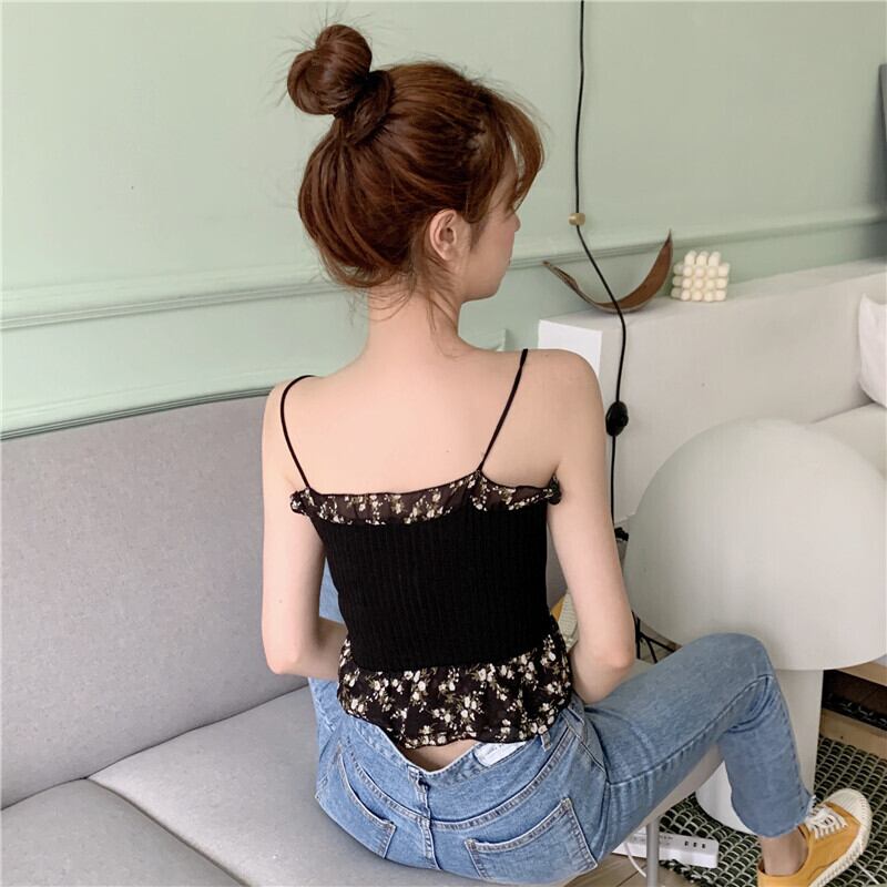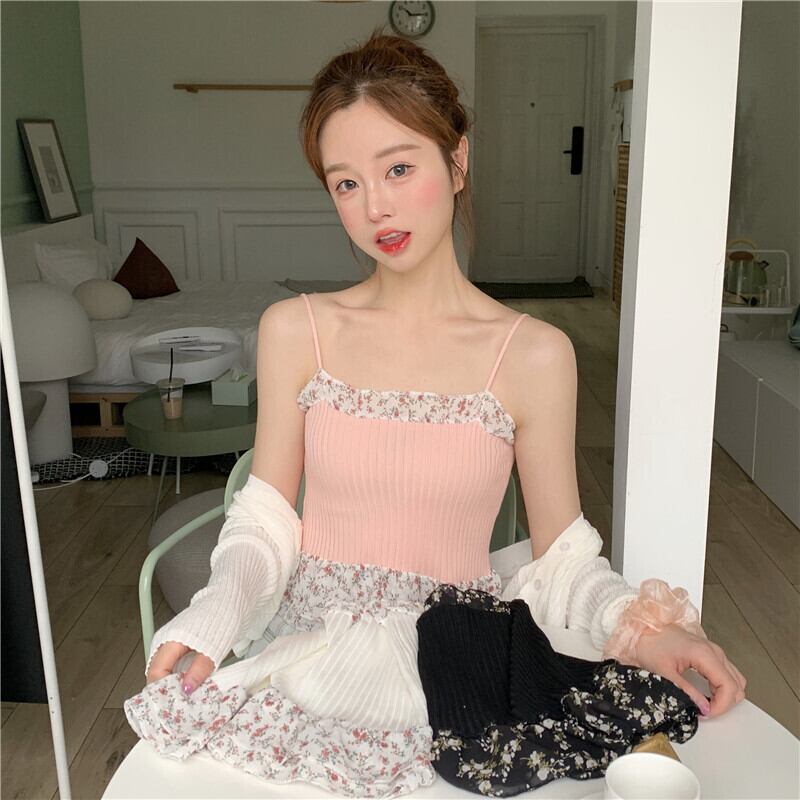 ✞ キャミソール♥カワイイ♥ニット花柄シフォントップス スウィート ステッチ ✞ゴスロリ SM ミリ 甘ロリ クラロリ 和ロリ エレガント 黒ロリ 姫ロリ 華ロリ BB-BB9982094