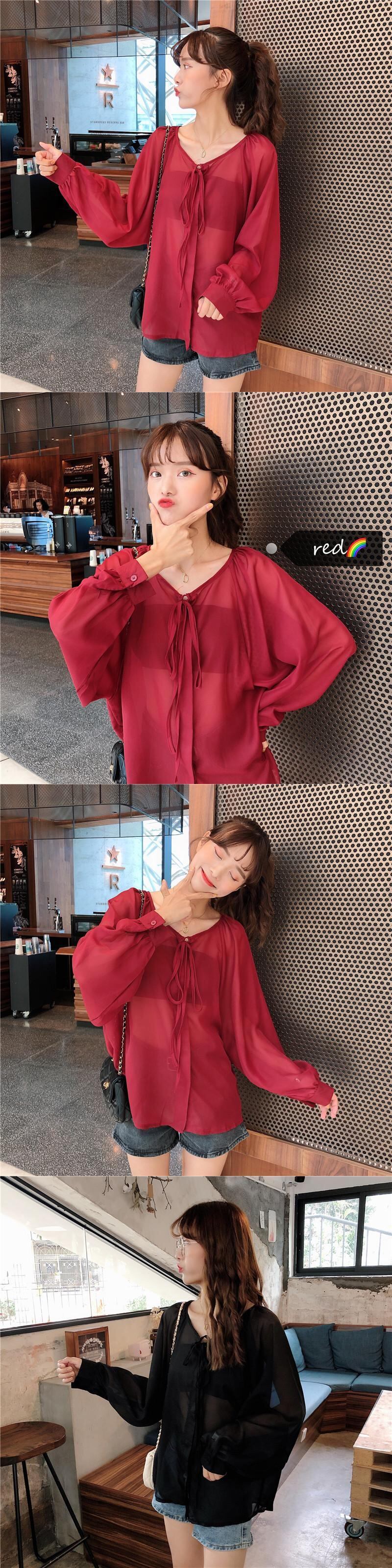 ✞ シフォンシャツブラウスラウンドネック レーススリーブ カーディガン♥カワイイ♥コート ランタンスリーブ ✞ゴスロリ SM ミリ 甘ロリ クラロリ 和ロリ エレガント 黒ロリ 姫ロリ 華ロリ BB-BB7975380