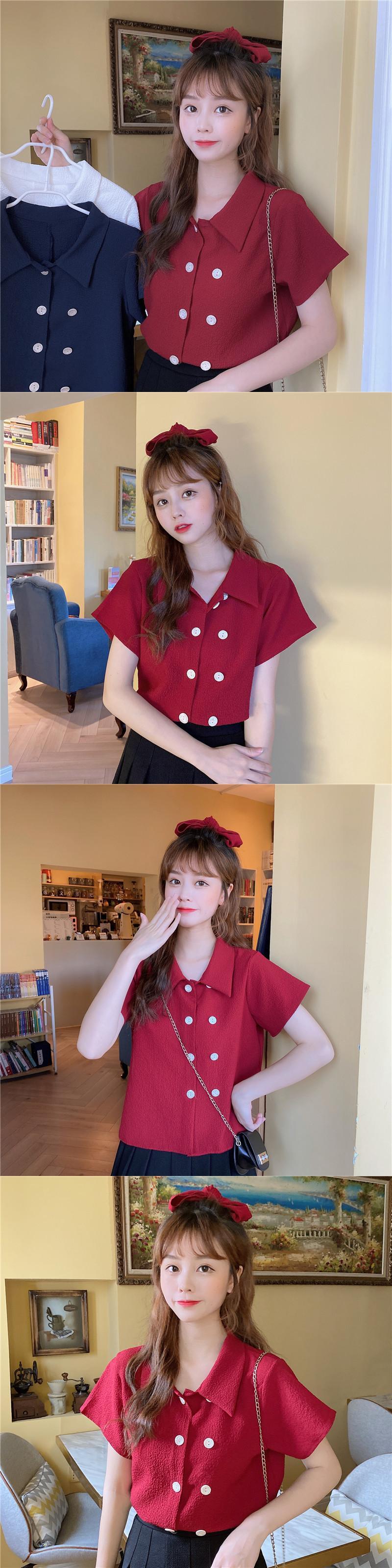 ✞ ソリッド カラーダブルブレストシフォンシャツブラウストップス スウィート ソリッドカラー ✞ゴスロリ SM ミリ 甘ロリ クラロリ 和ロリ エレガント 黒ロリ 姫ロリ 華ロリ BB-BB4990578