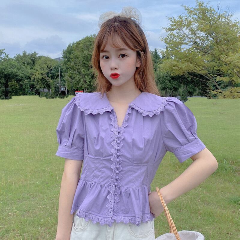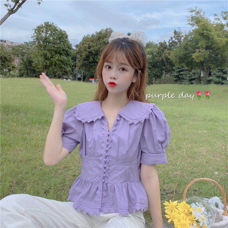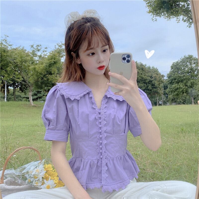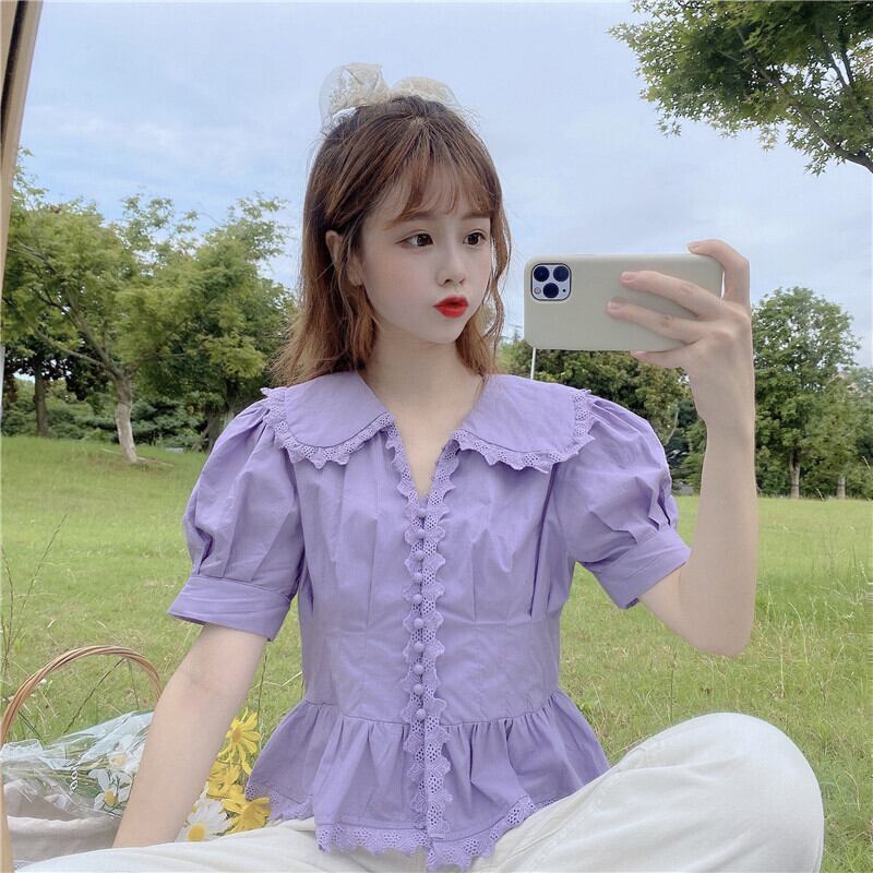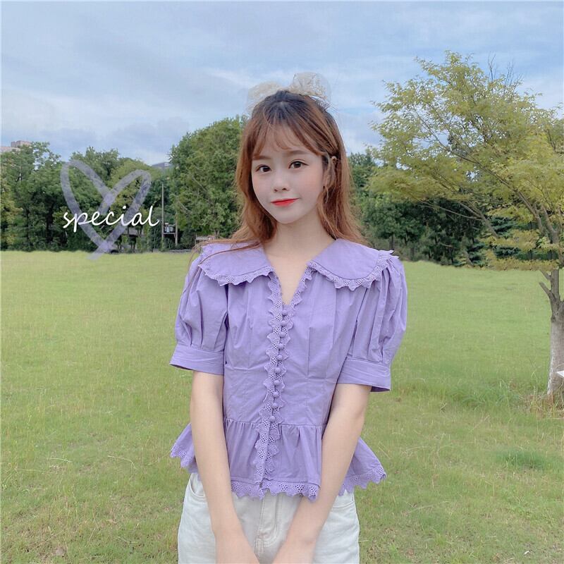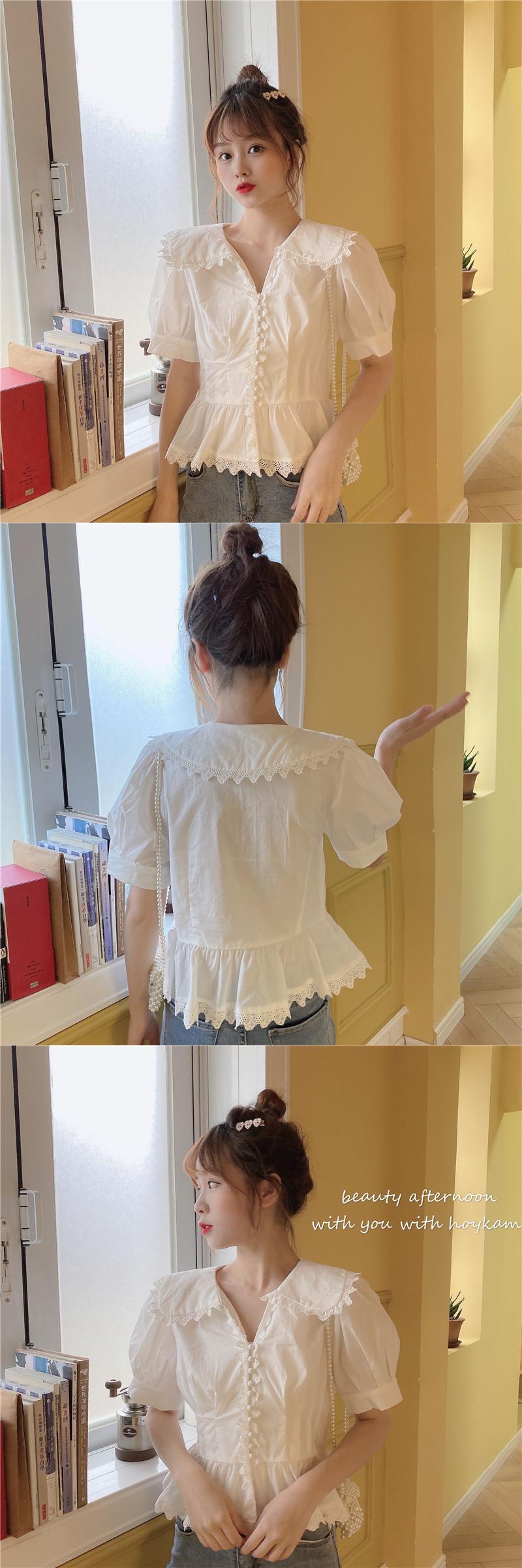✞ レースプリーツスリーブショートシャツブラウス スウィート ステッチ ✞ゴスロリ SM ミリ 甘ロリ クラロリ 和ロリ エレガント 黒ロリ 姫ロリ 華ロリ BB-BB5347460