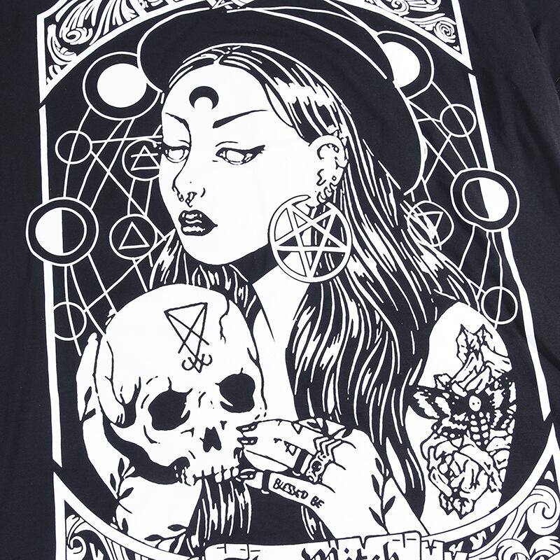✞✝✞ ダークきれいめ☆ロングTシャツ ラウンドネックプリント柄トップス コットン ✞✝✞ ゴスロリ SM ミリ 甘ロリ クラロリ 和ロリ エレガント 黒ロリ 姫ロリ 華ロリ AA-AA7626691