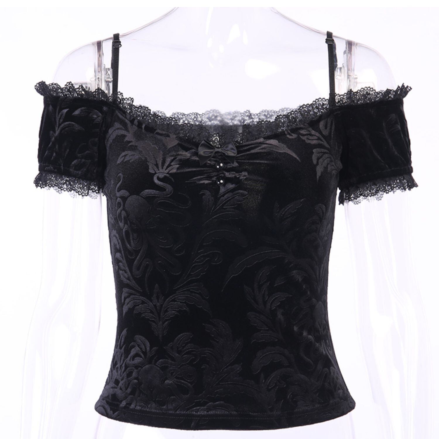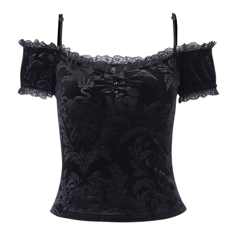 ✞✝✞ キャミソールスリム半袖スリーブシャツブラウス ショート ✞✝✞ ゴスロリ SM ミリ 甘ロリ クラロリ 和ロリ エレガント 黒ロリ 姫ロリ 華ロリ AA-AA3719965