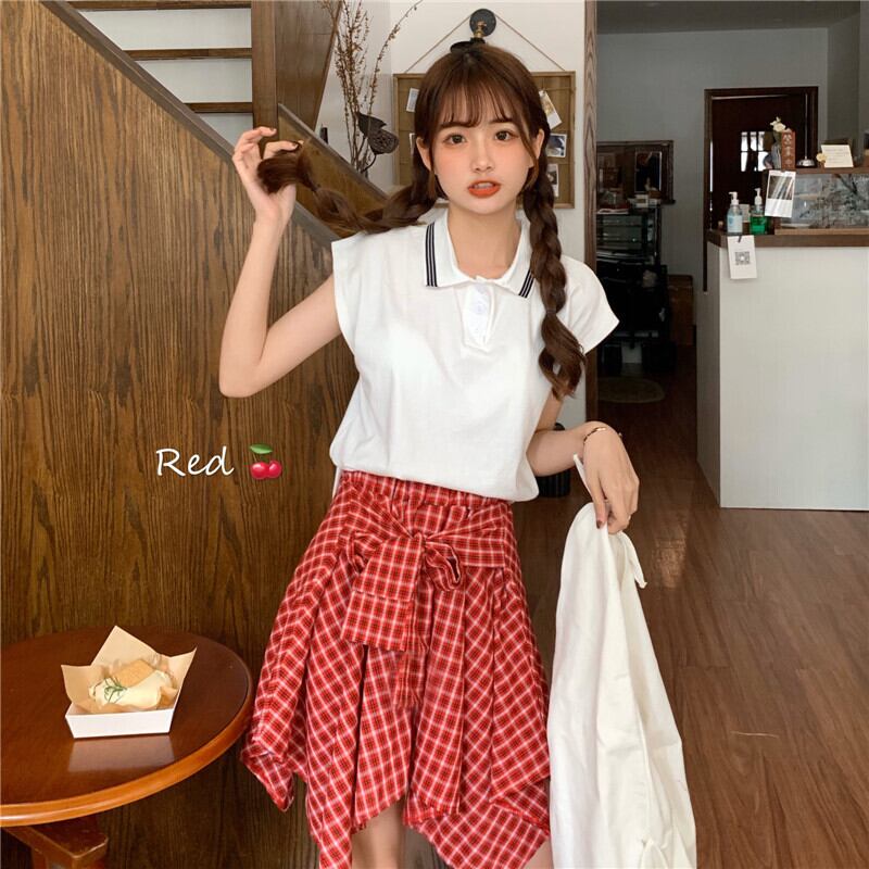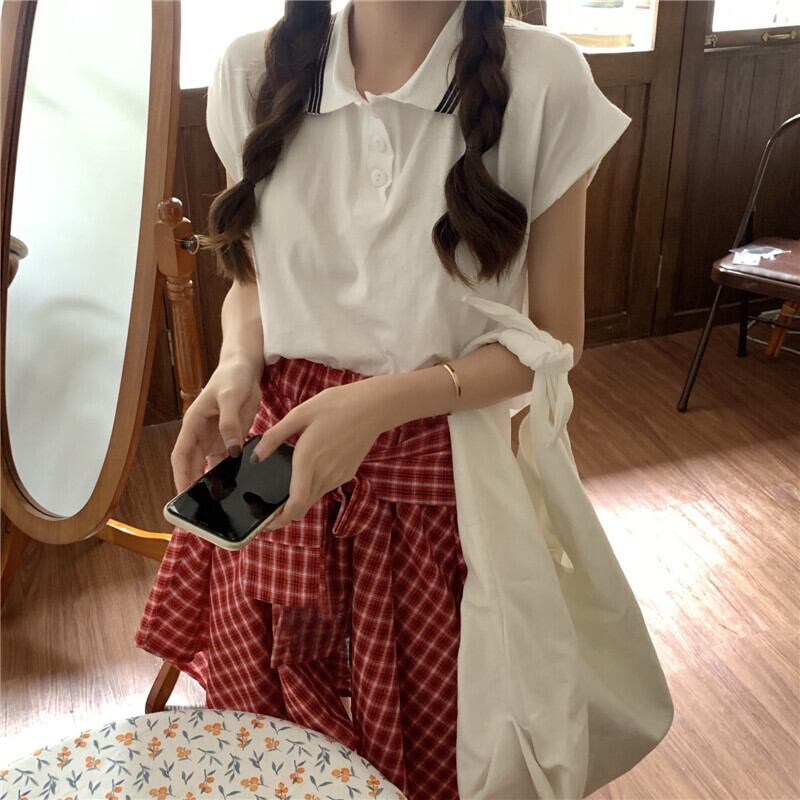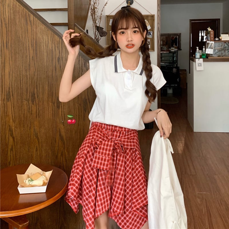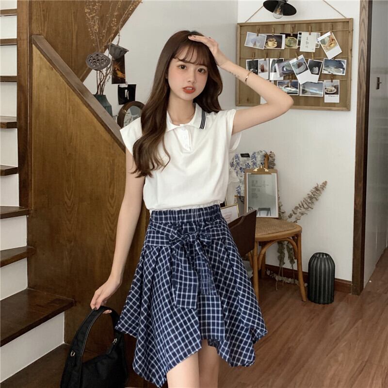 色:ホワイトTシングルピース,チェック柄スカートワンピース,ブルーチェック柄スカートワンピース