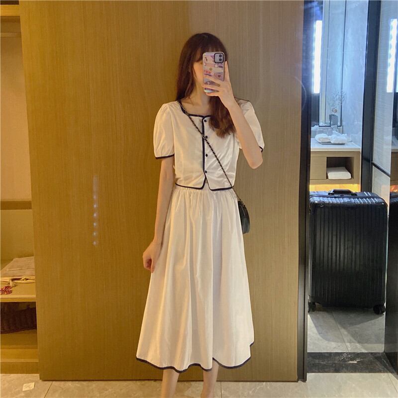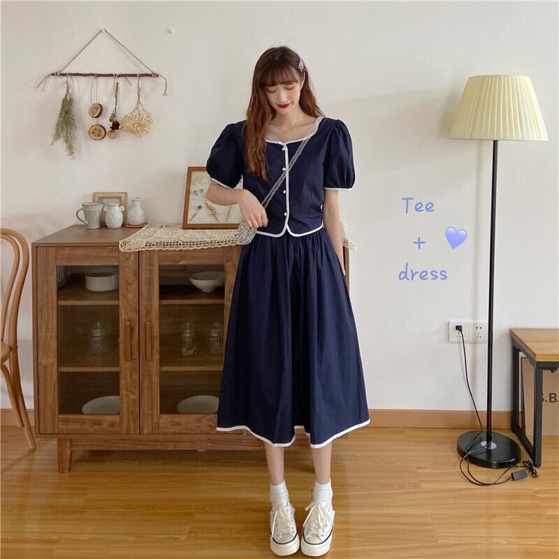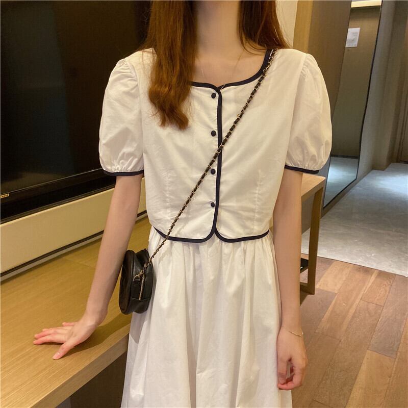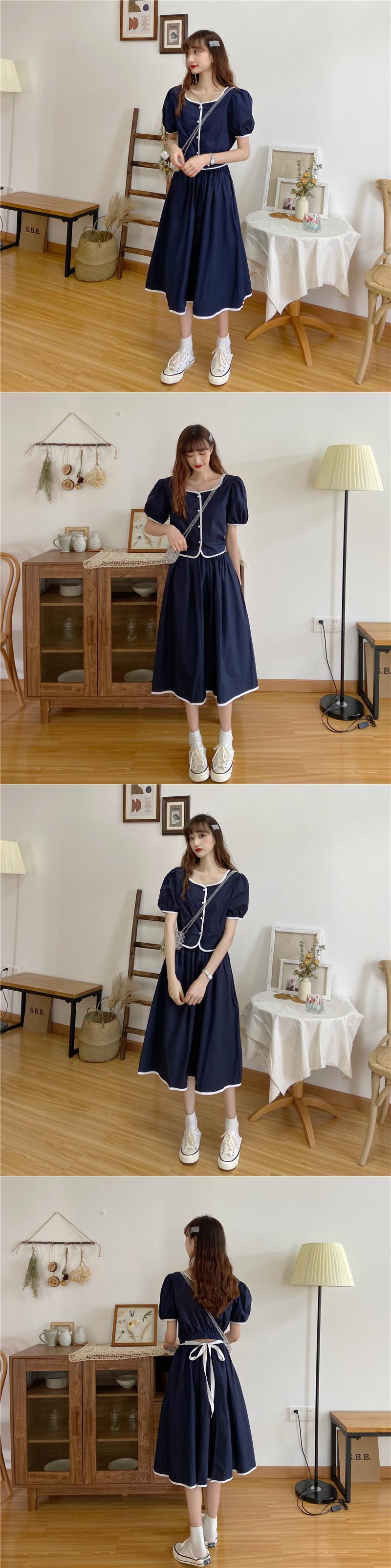 色:ホワイトトップ,ブルートップワンピース,ホワイトスカートワンピース,ブルースカートワンピース