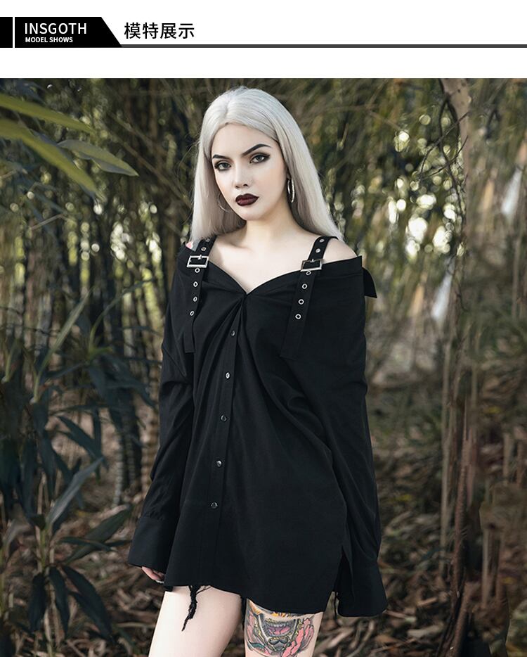 ✞✝✞ ダークきれいめ☆ロングストラップレスシャツブラウス 長めのストラップ ✞✝✞ ゴスロリ SM ミリ 甘ロリ クラロリ 和ロリ エレガント 黒ロリ 姫ロリ 華ロリ AA-AA1506730