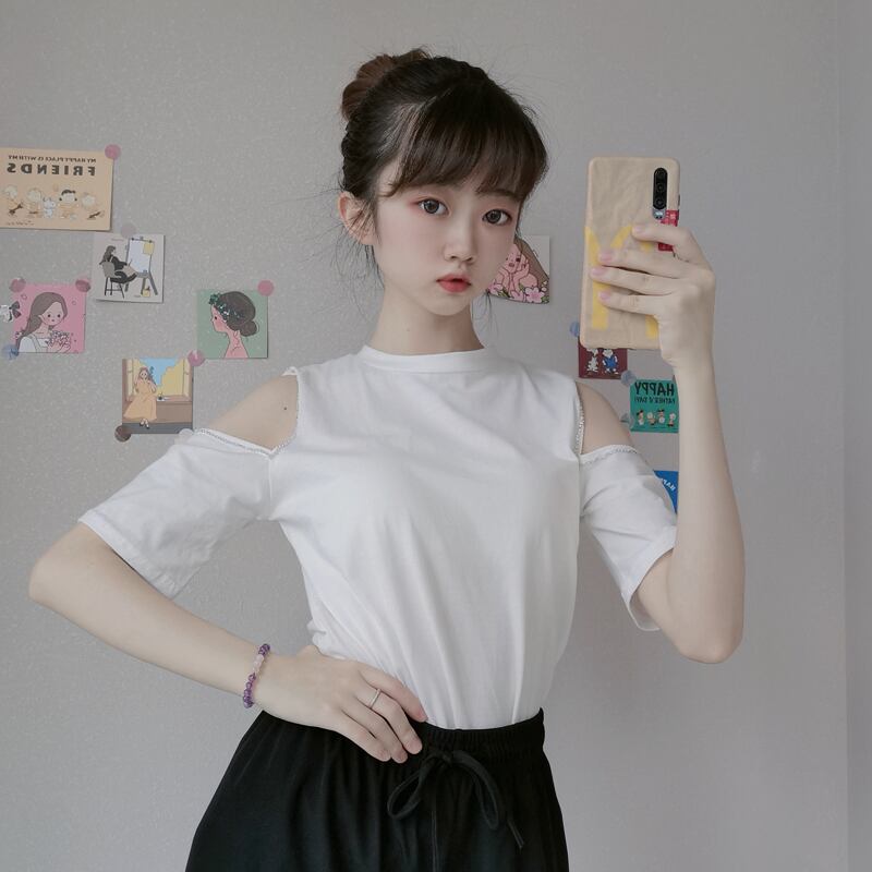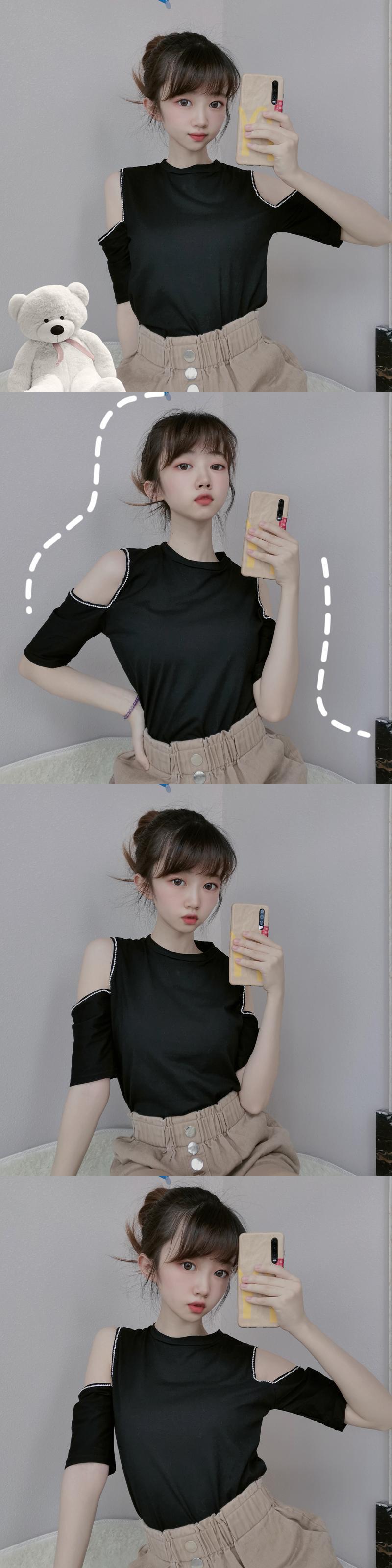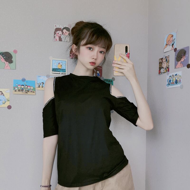 ✞ ラウンドネックスリムストラップレス肩だしTシャツ ✞ゴスロリ SM ミリ 甘ロリ クラロリ 和ロリ エレガント 黒ロリ 姫ロリ 華ロリ BB-BB4036121