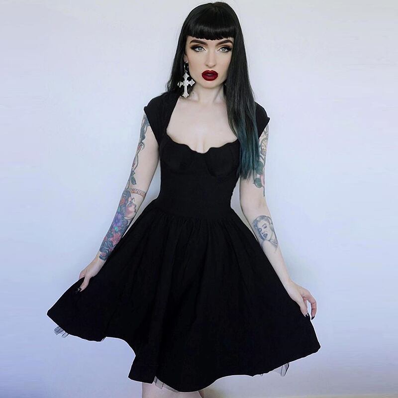 ✞✝✞ ダーク黒☆ブラックメッシュAラインチュニック ワンピースドレス レース スカート レトロ スクウェアネック ✞✝✞ ゴスロリ SM ミリ 甘ロリ クラロリ 和ロリ エレガント 黒ロリ 姫ロリ 華ロリ AA-AA8761217