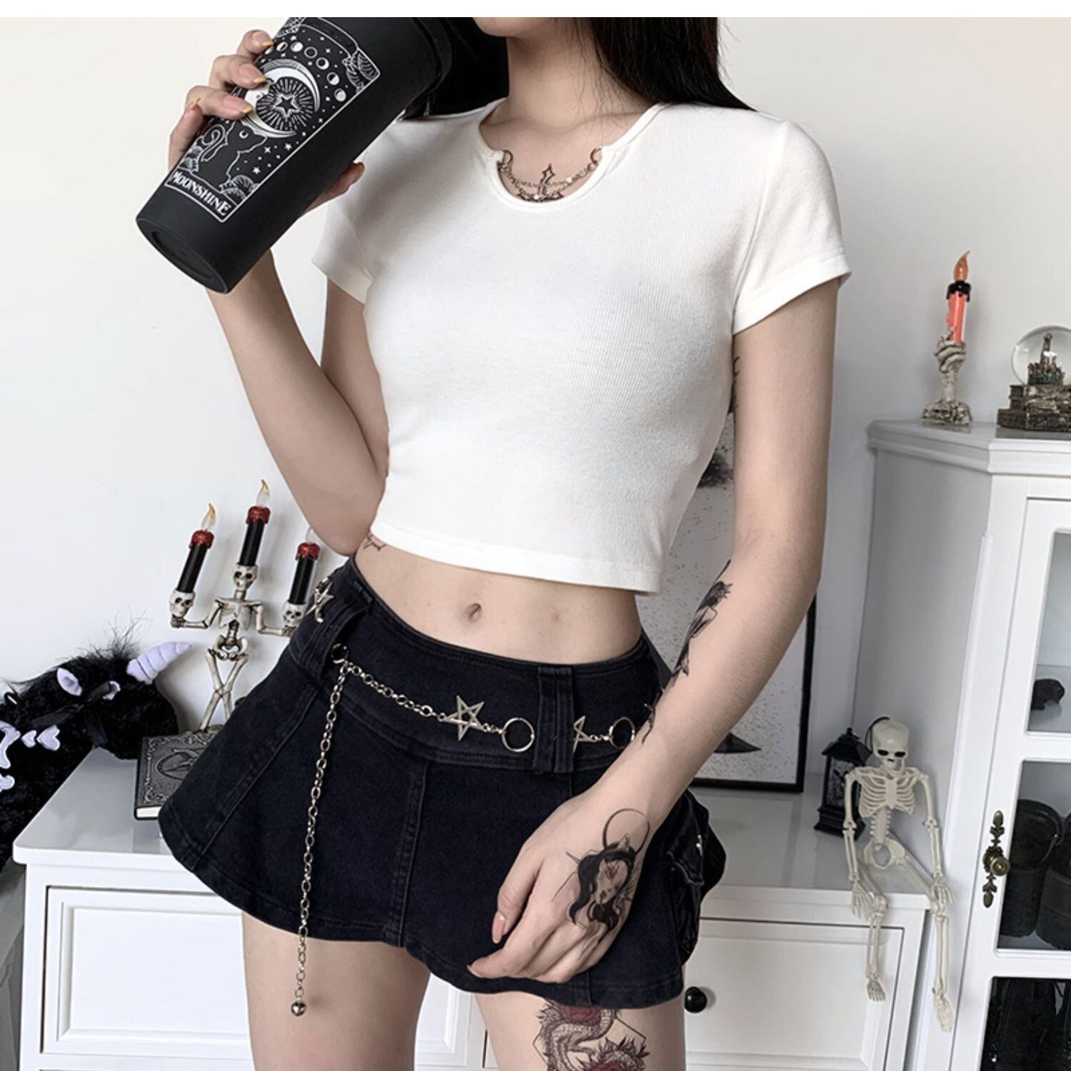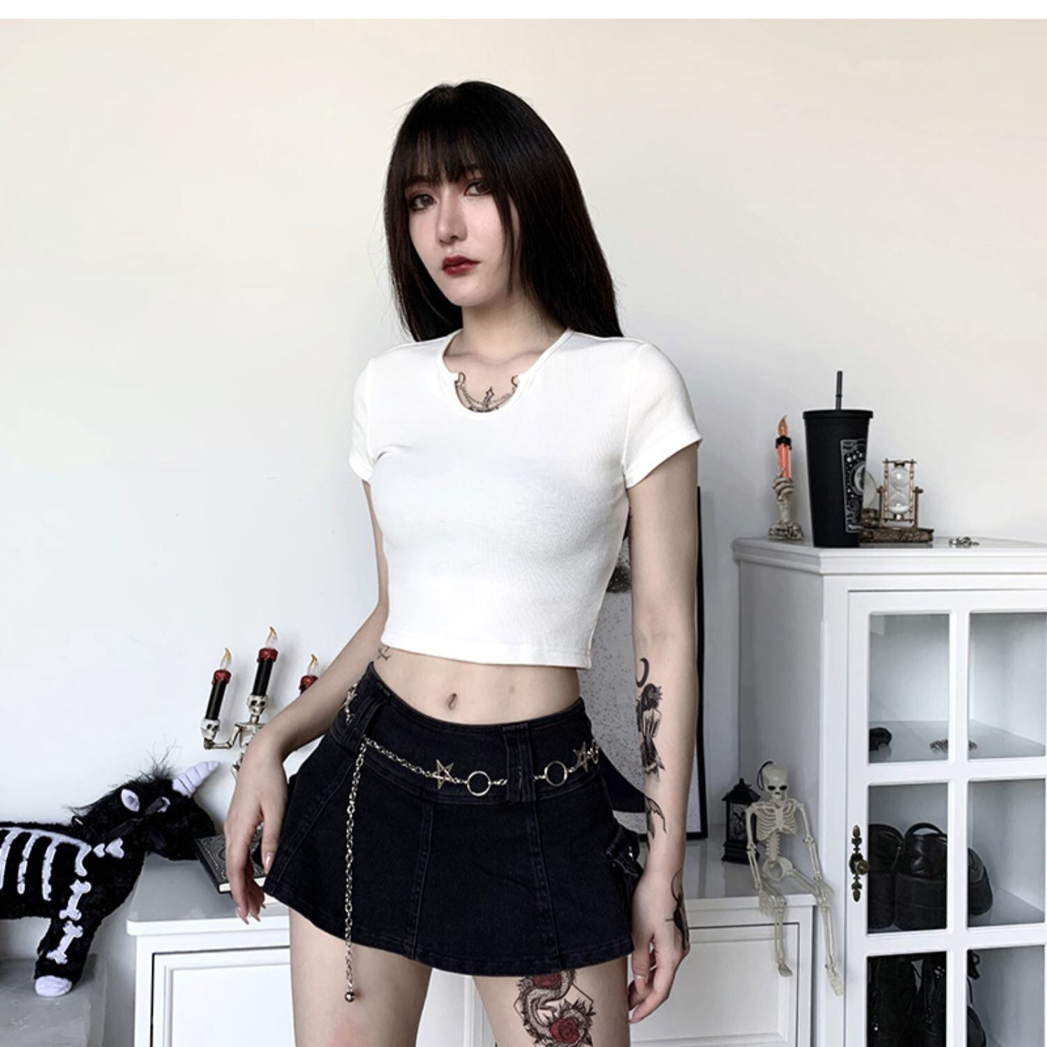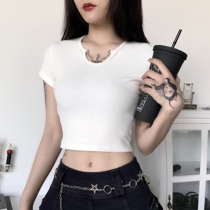 ✞✝✞ 白Tシャツ シャツブラウスチェーン きれいめ☆ ホワイト ストリート ✞✝✞ ゴスロリ SM ミリ 甘ロリ クラロリ 和ロリ エレガント 黒ロリ 姫ロリ 華ロリ AA-AA9689803