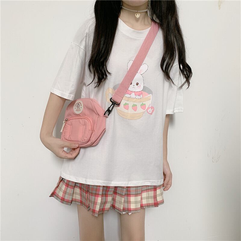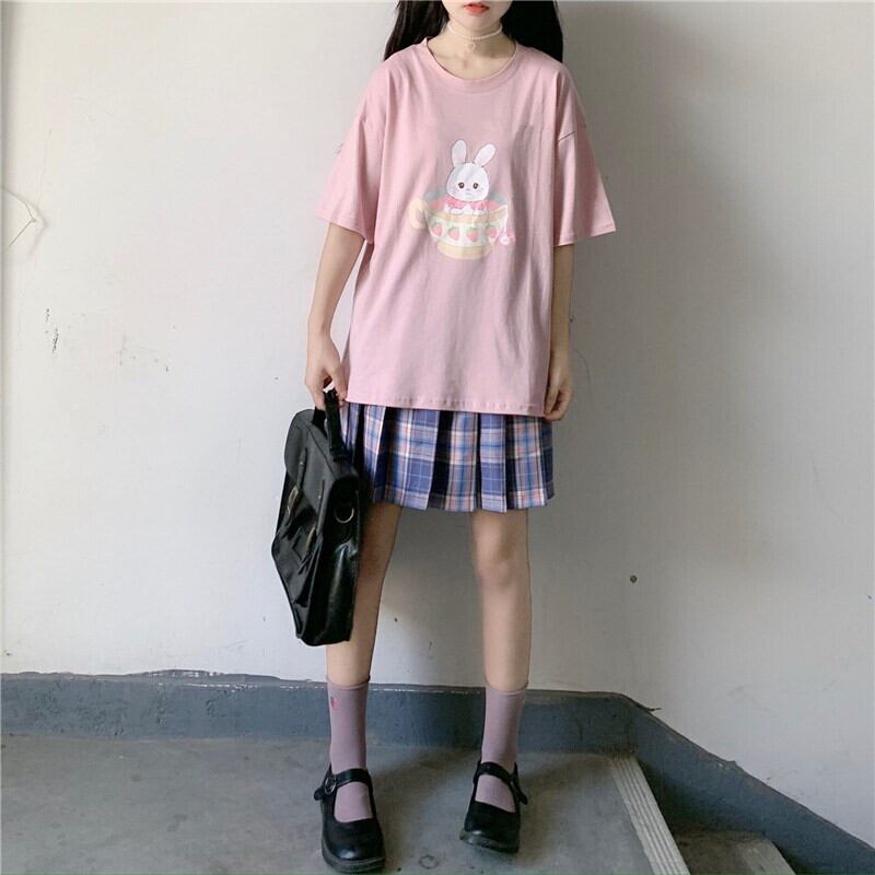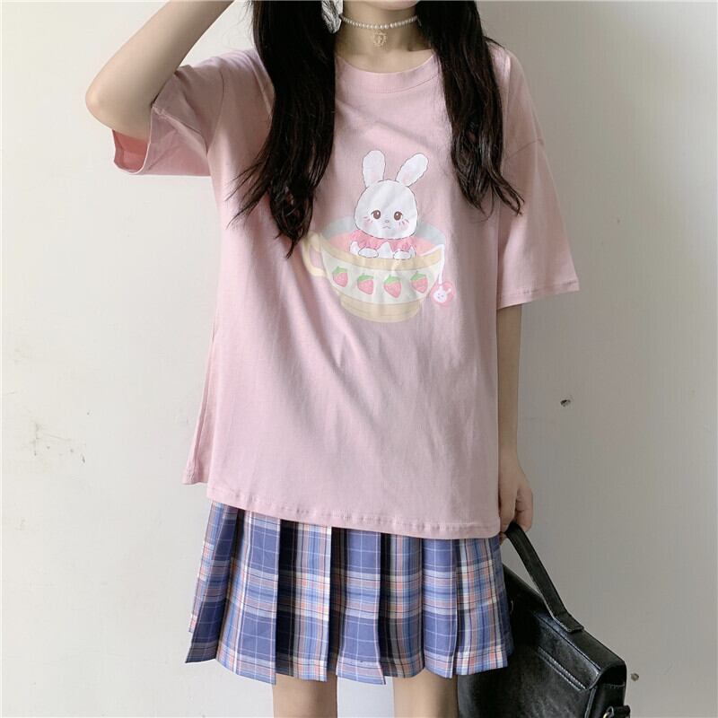 ✞ うさぎプリント柄ラウンドネック半袖スリーブTシャツ ショート ガーリー パニエ ペチコート ✞ゴスロリ SM ミリ 甘ロリ クラロリ 和ロリ エレガント 黒ロリ 姫ロリ 華ロリ BB-BB7451282