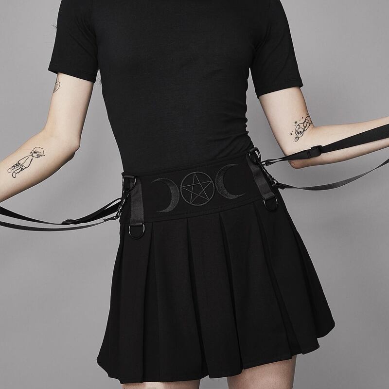 ✞ゴシックダーク黒プリーツストラップバックルベルトスカート ブラック ショート ✞✝✞ ゴスロリ SM ミリ 甘ロリ クラロリ 和ロリ エレガント 黒ロリ 姫ロリ 華ロリ AA-AA3737667