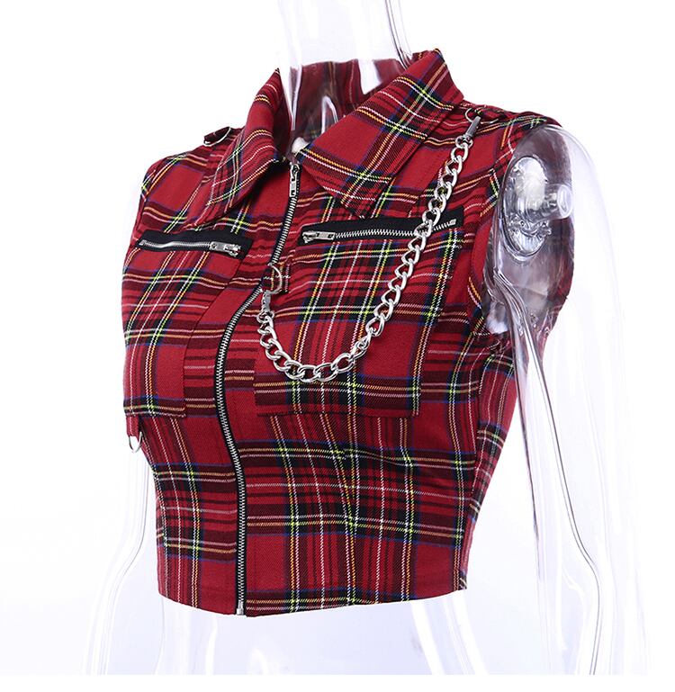 ✞✝✞ ダークノースリーブサマーチェック柄ショートトップス 夏物 ✞✝✞ ゴスロリ SM ミリ 甘ロリ クラロリ 和ロリ エレガント 黒ロリ 姫ロリ 華ロリ AA-AA3043142
