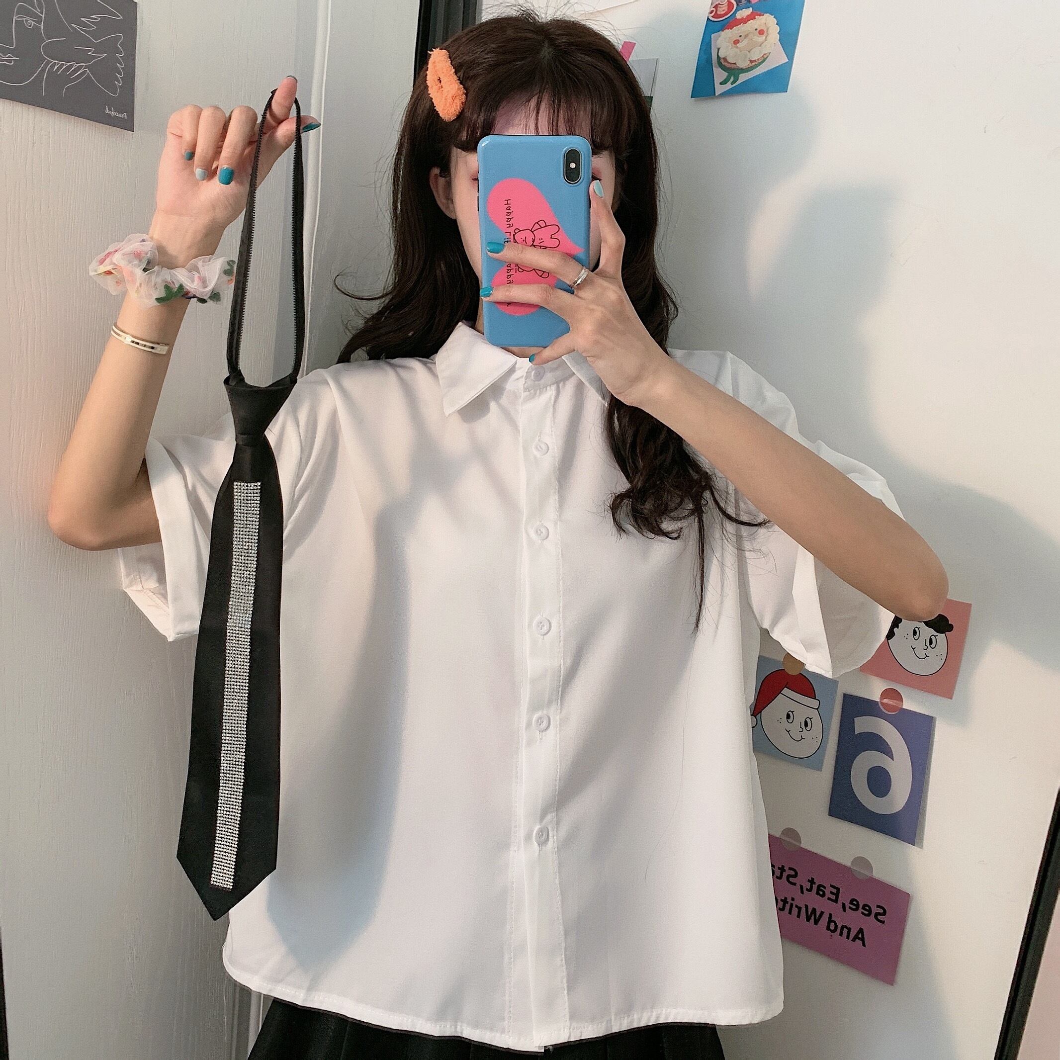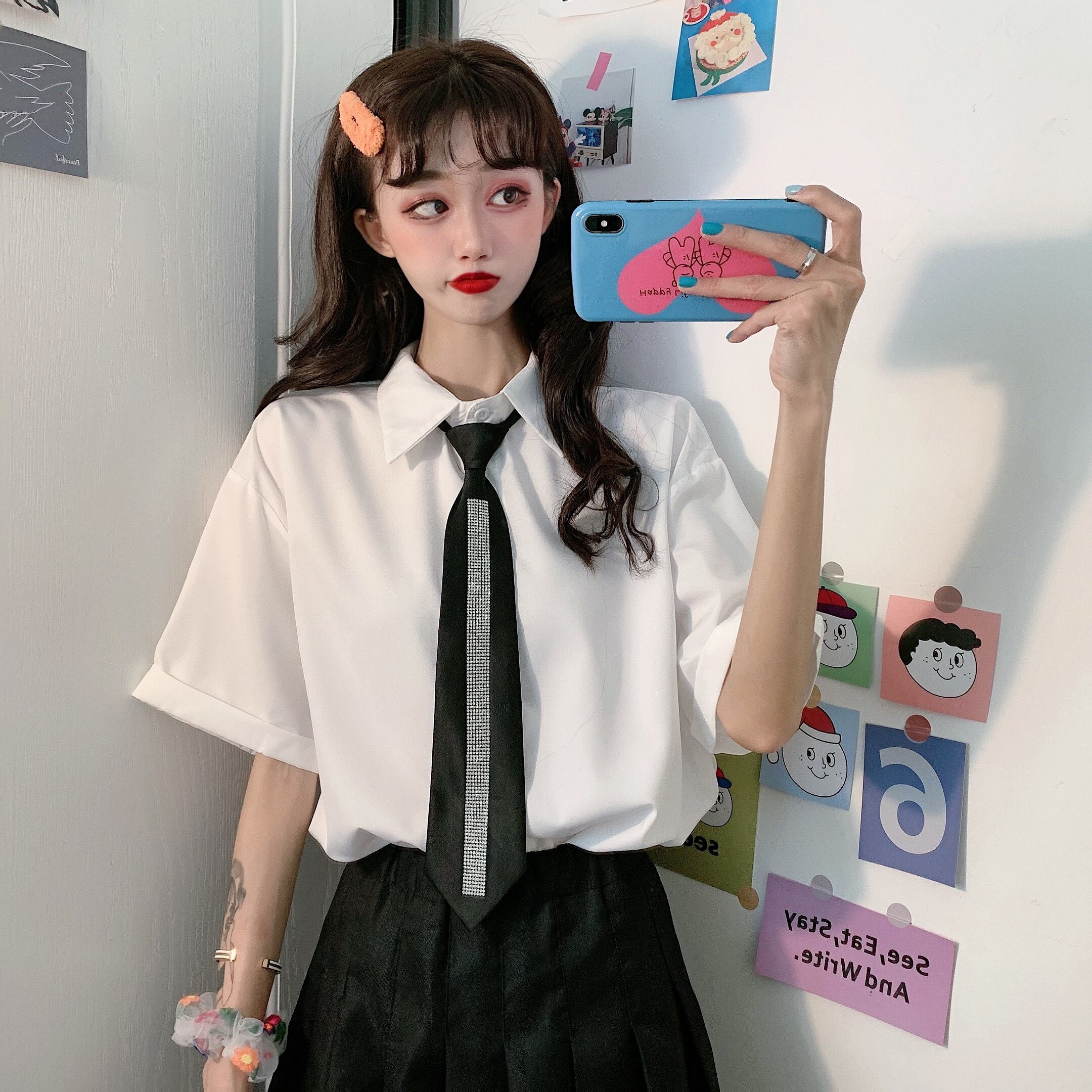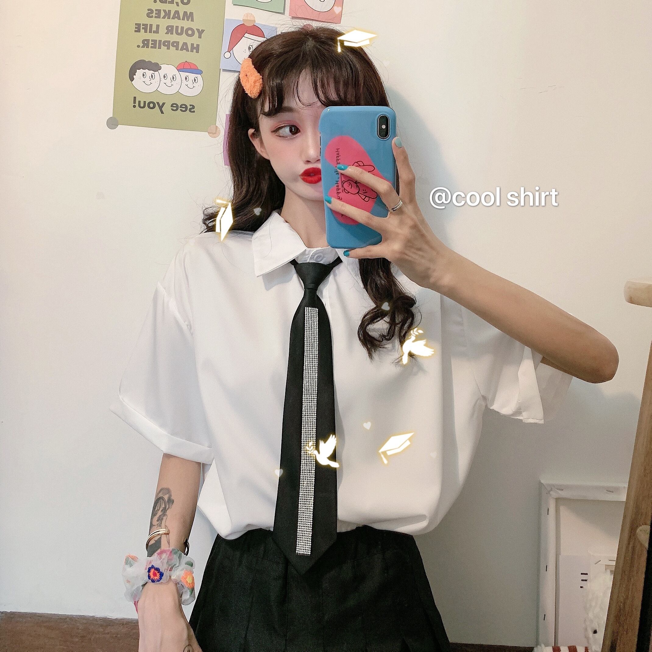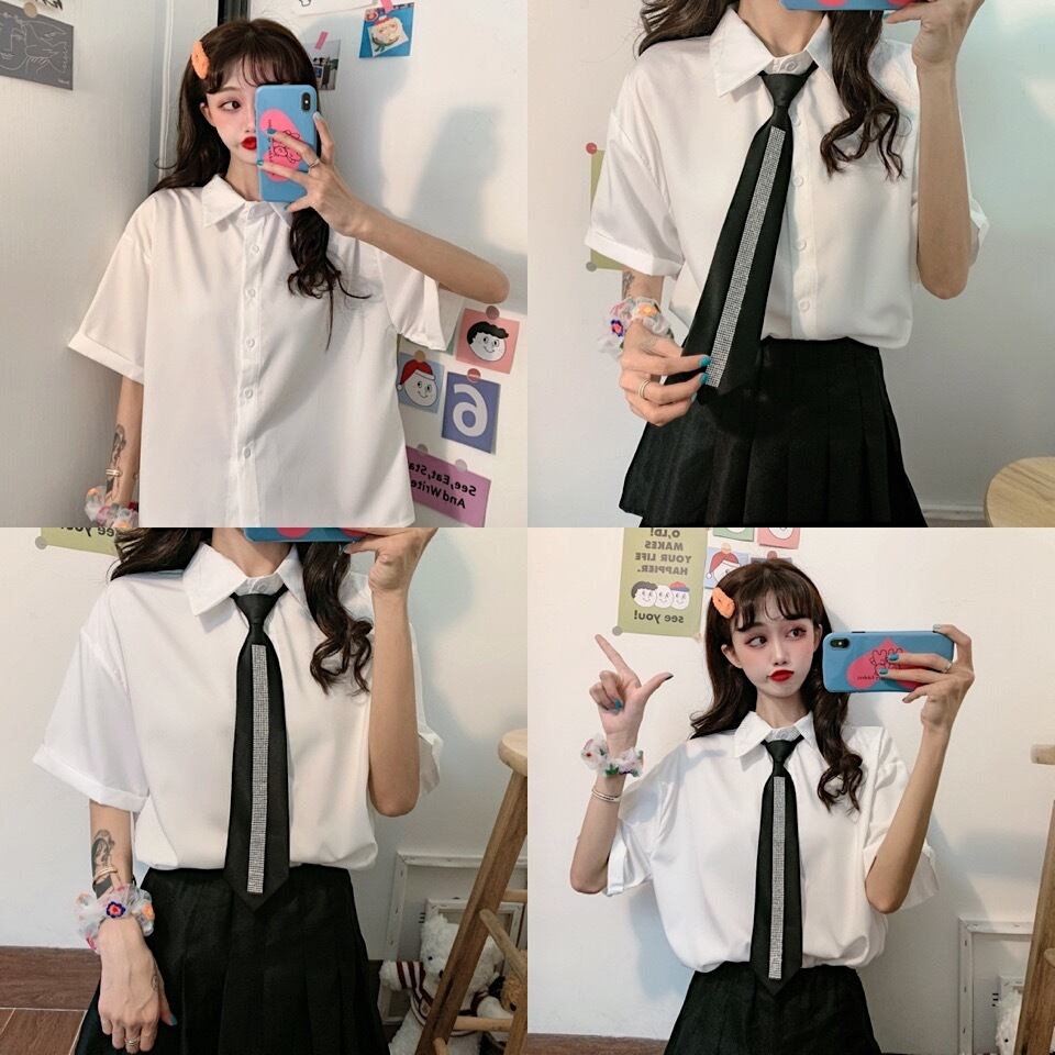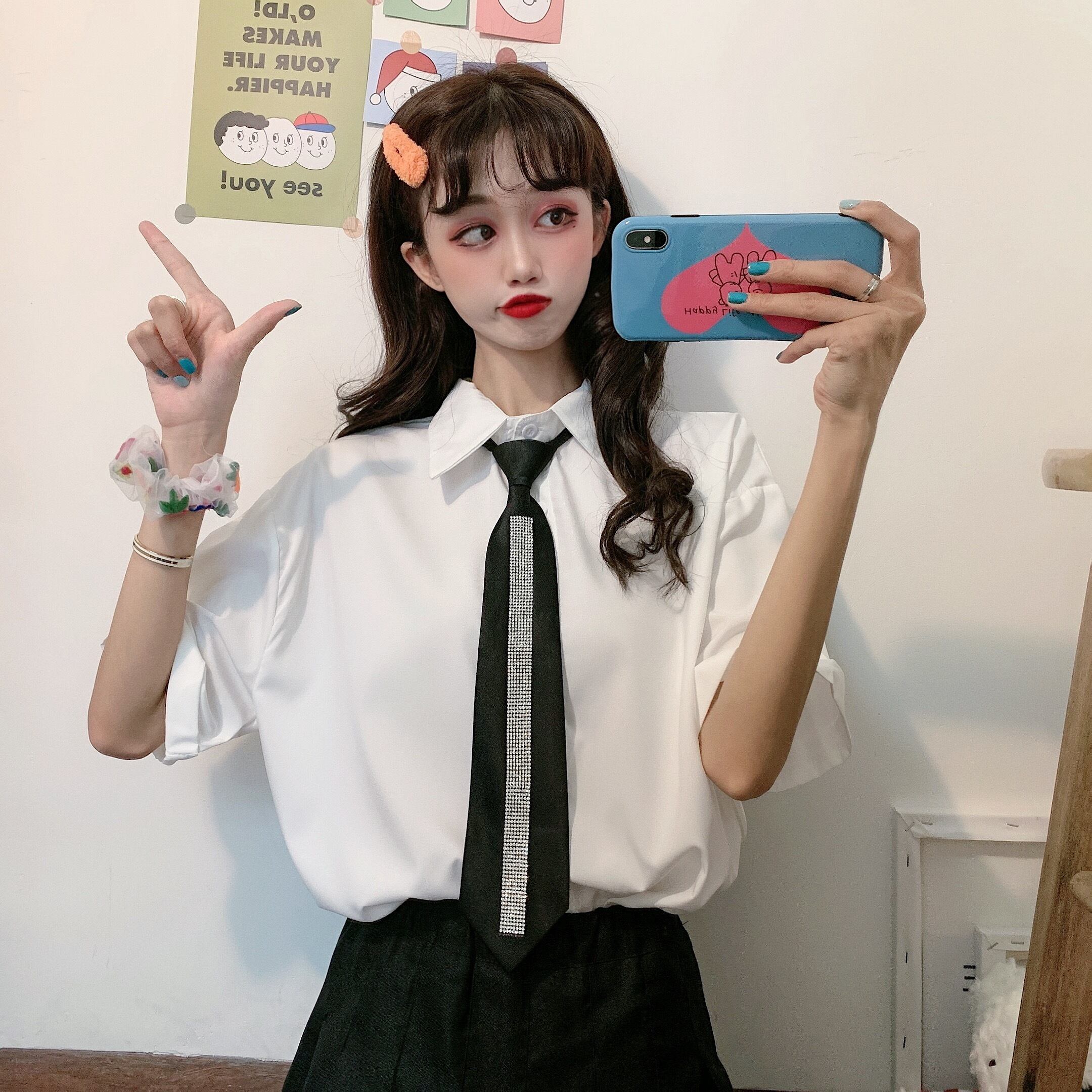色:フラッシュダイヤモンドネクタイ付きの白いシャツ