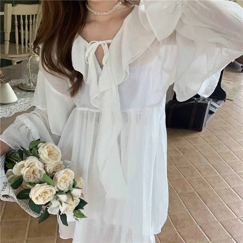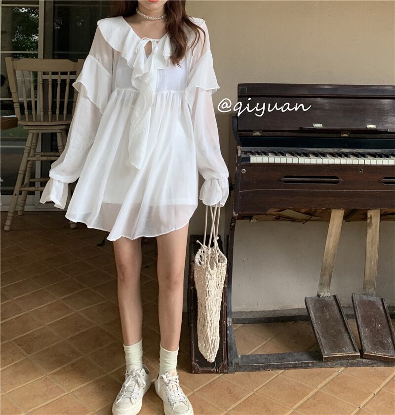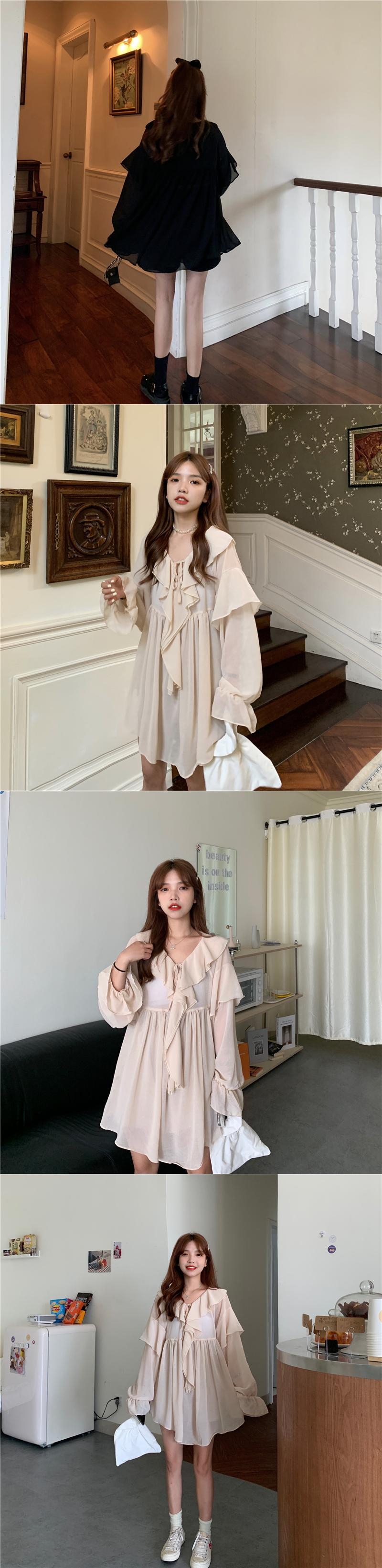✞ゴシックレースシフォンフリルチュニック ワンピースドレスOP ランタンスリーブ スウィート ✞ゴスロリ SM ミリ 甘ロリ クラロリ 和ロリ エレガント 黒ロリ 姫ロリ 華ロリ BB-BB9295046