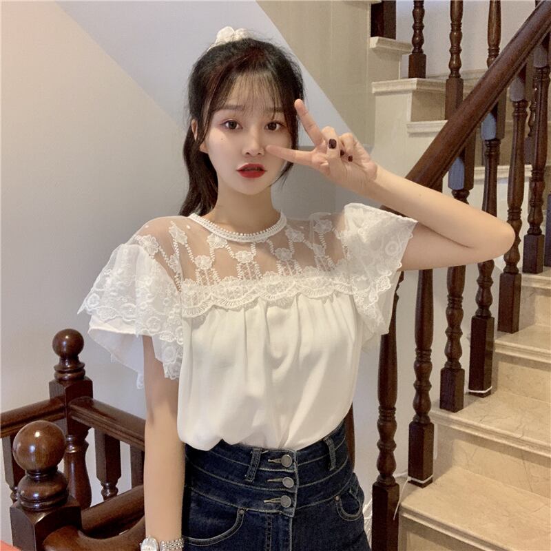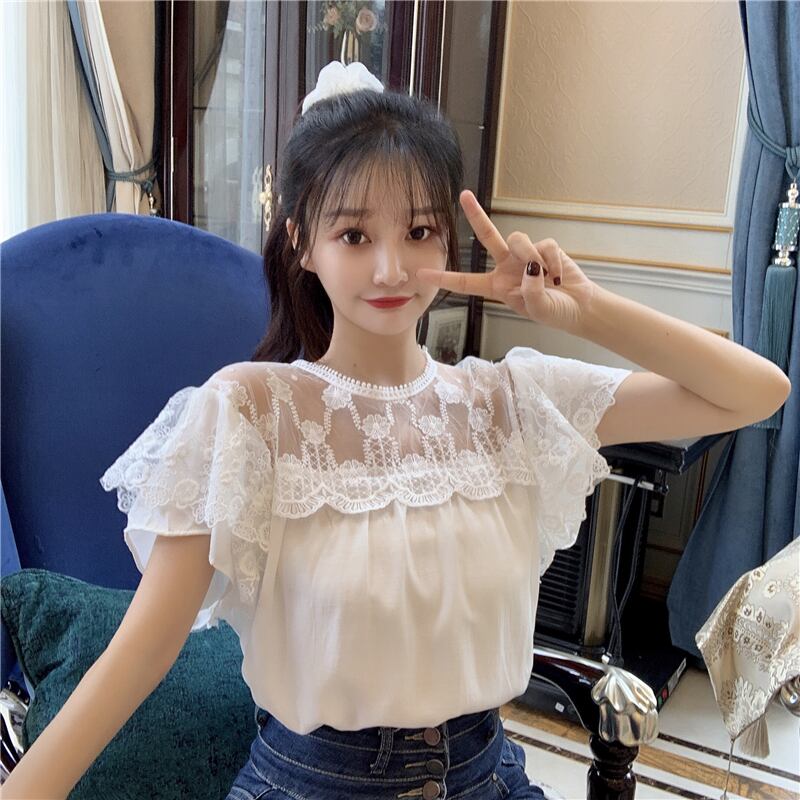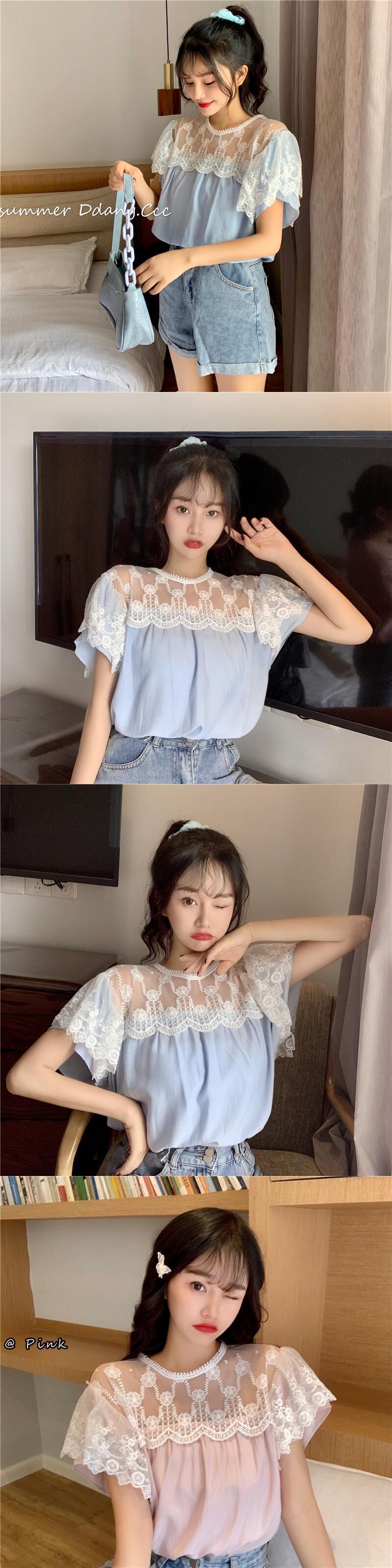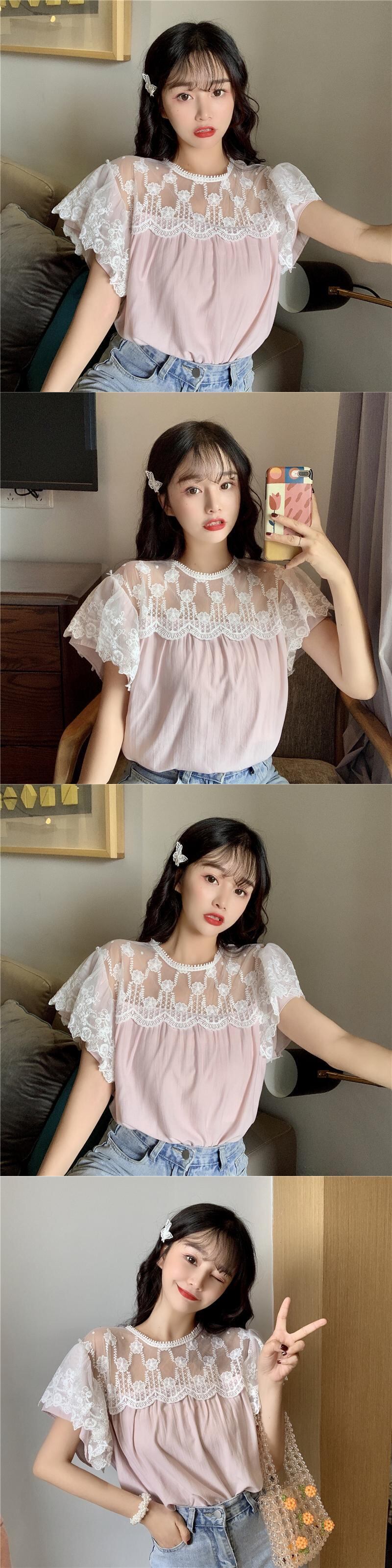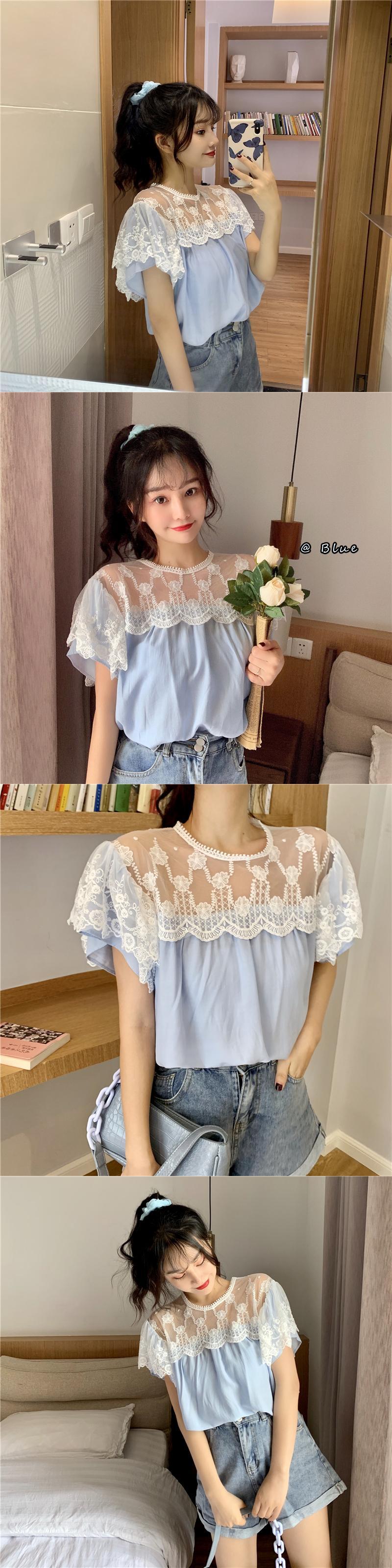 ✞ レースラウンドネック半袖スリーブシャツブラウス ショート スウィート ステッチ ✞ゴスロリ SM ミリ 甘ロリ クラロリ 和ロリ エレガント 黒ロリ 姫ロリ 華ロリ BB-BB5268856