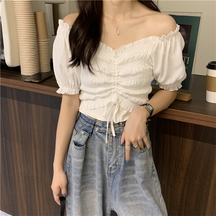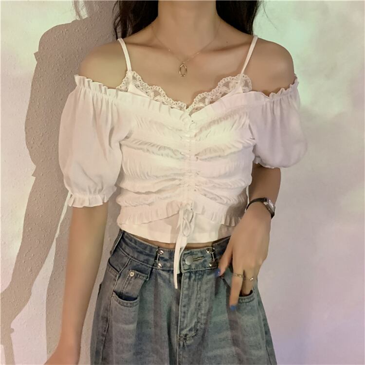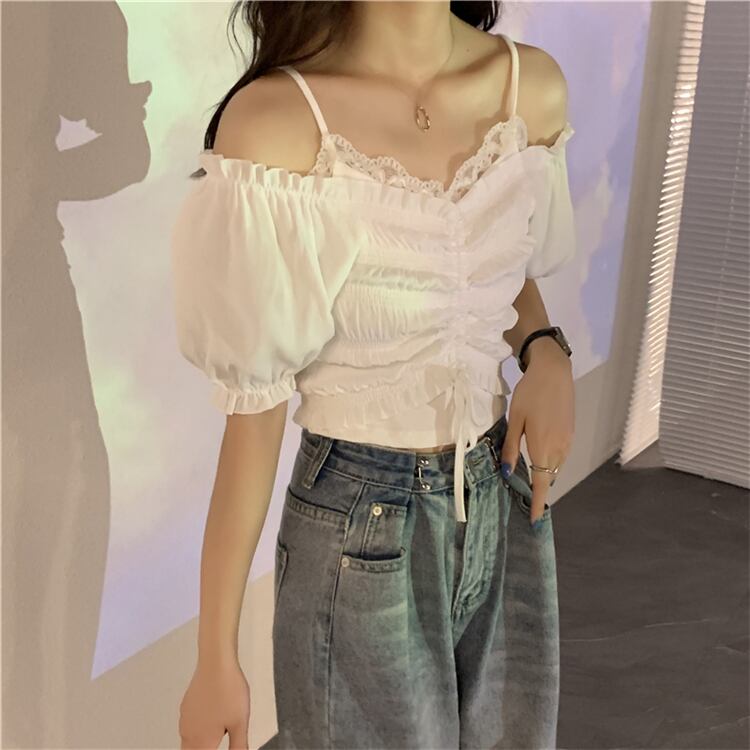 ✞ スリーブVネックギャザーシャツブラウスショートトップス スウィート ✞ゴスロリ SM ミリ 甘ロリ クラロリ 和ロリ エレガント 黒ロリ 姫ロリ 華ロリ BB-BB1005648