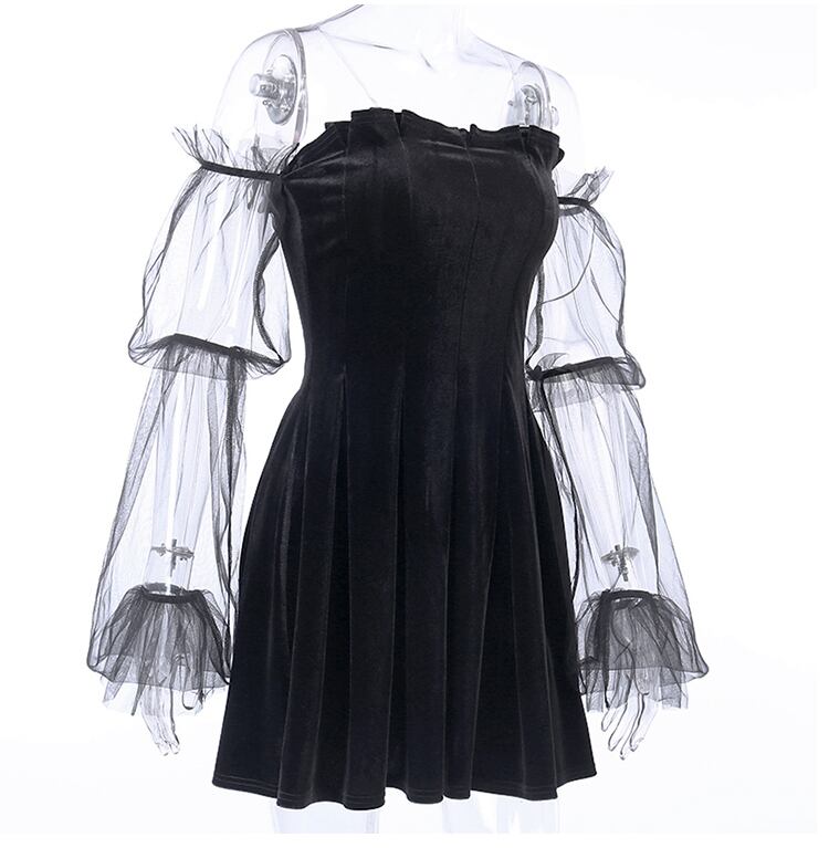 ✞✝✞ ウエストすっきり☆着痩せ♥カワイイ♥スリーブAラインスカート ✞✝✞ ゴスロリ SM ミリ 甘ロリ クラロリ 和ロリ エレガント 黒ロリ 姫ロリ 華ロリ AA-AA5048296