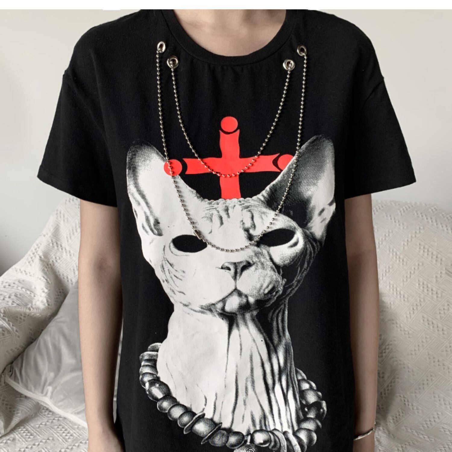 ✞✝✞ ダークTシャツ きれいめ☆プリントブラウス ストリート ✞✝✞ ゴスロリ SM ミリ 甘ロリ クラロリ 和ロリ エレガント 黒ロリ 姫ロリ 華ロリ AA-AA6553784