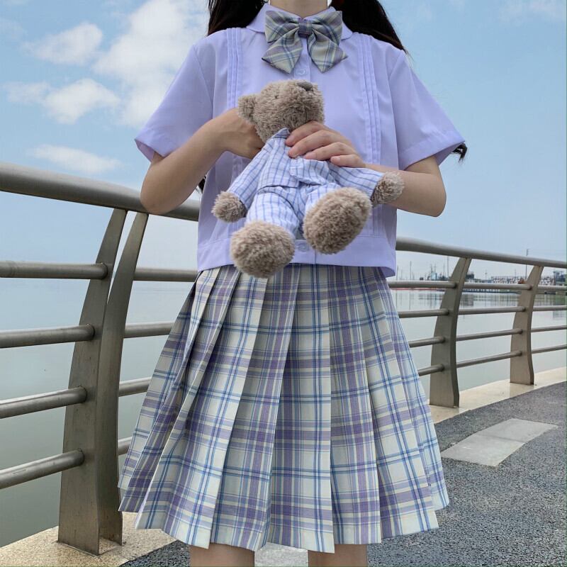 色:パープルプリーツスカートワンピース,ちょうネクタイ