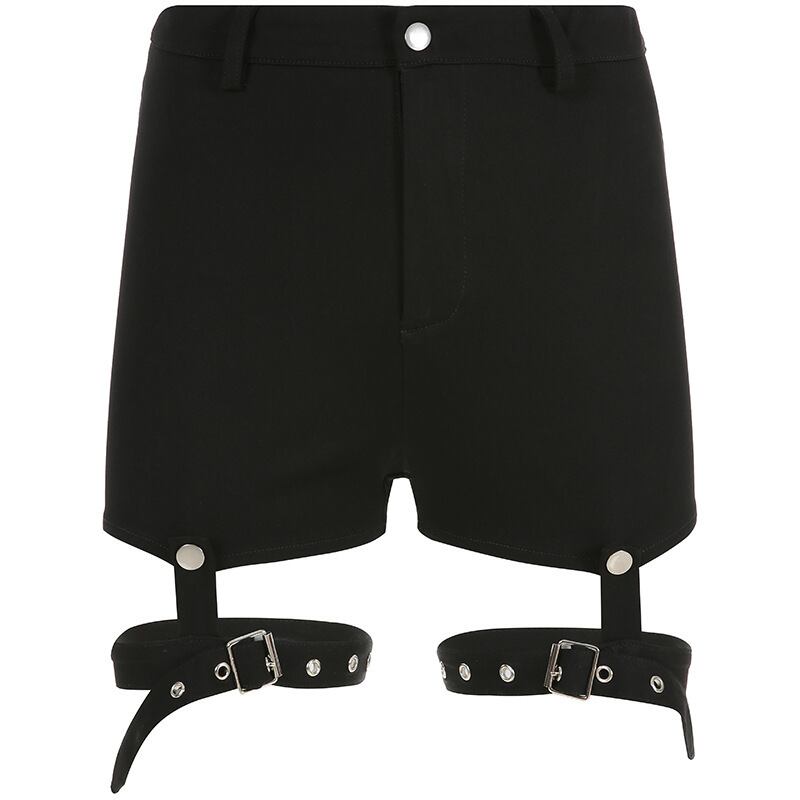 ✞✝✞ ダークショートパンツブラックスリムバックルカジュアルパンツ ✞✝✞ ゴスロリ SM ミリ 甘ロリ クラロリ 和ロリ エレガント 黒ロリ 姫ロリ 華ロリ AA-AA0714195