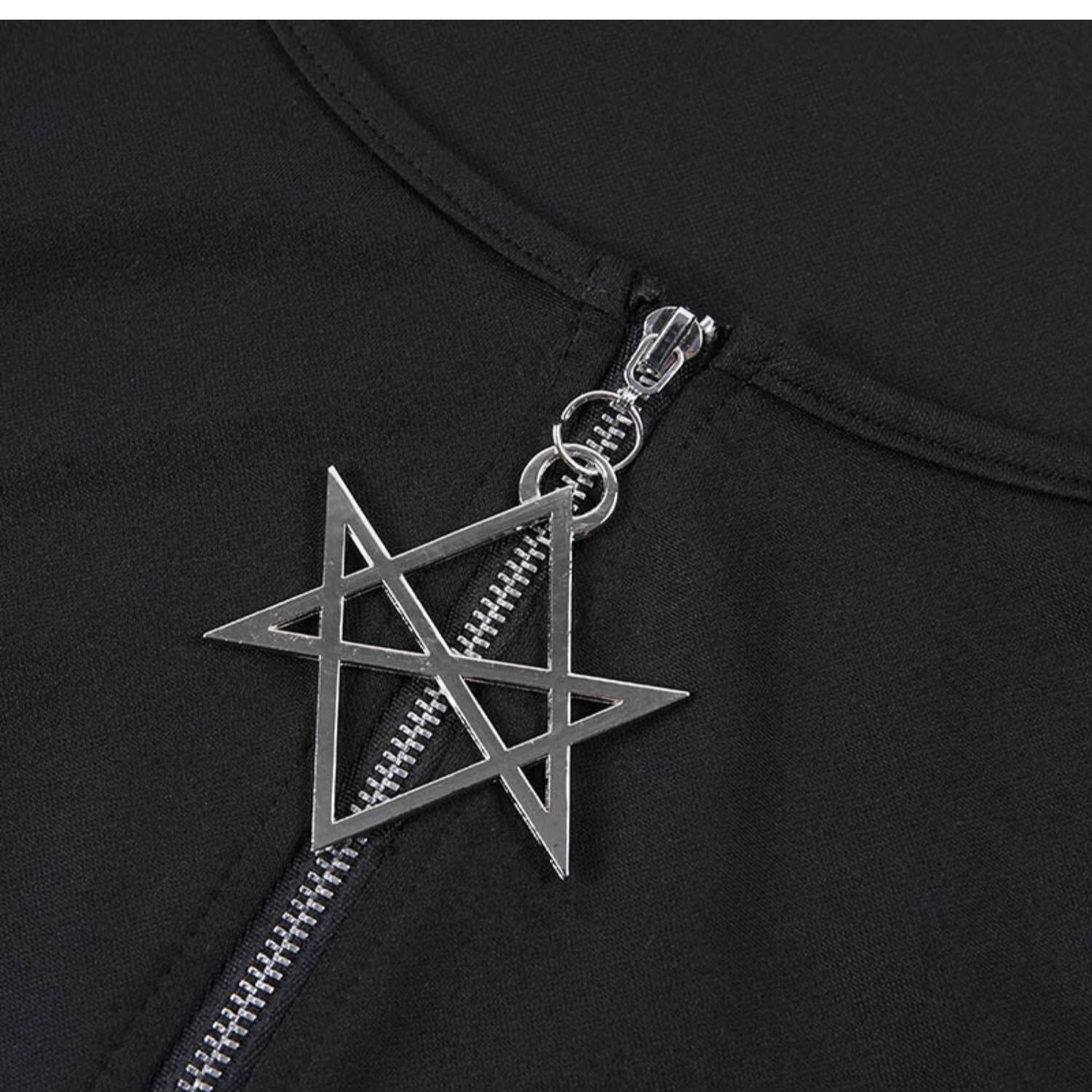 ✞✝✞ ダークきれいめ☆ショートジッパーTシャツ シャツブラウススリムブラック ✞✝✞ ゴスロリ SM ミリ 甘ロリ クラロリ 和ロリ エレガント 黒ロリ 姫ロリ 華ロリ AA-AA8379111