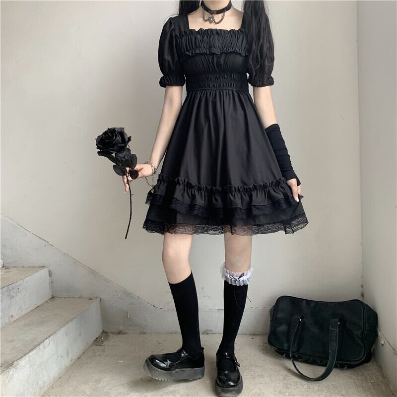 ✞ ダークレースブラックきれいめ☆ スクウェア ✞ゴスロリ SM ミリ 甘ロリ クラロリ 和ロリ エレガント 黒ロリ 姫ロリ 華ロリ BB-BB0932747