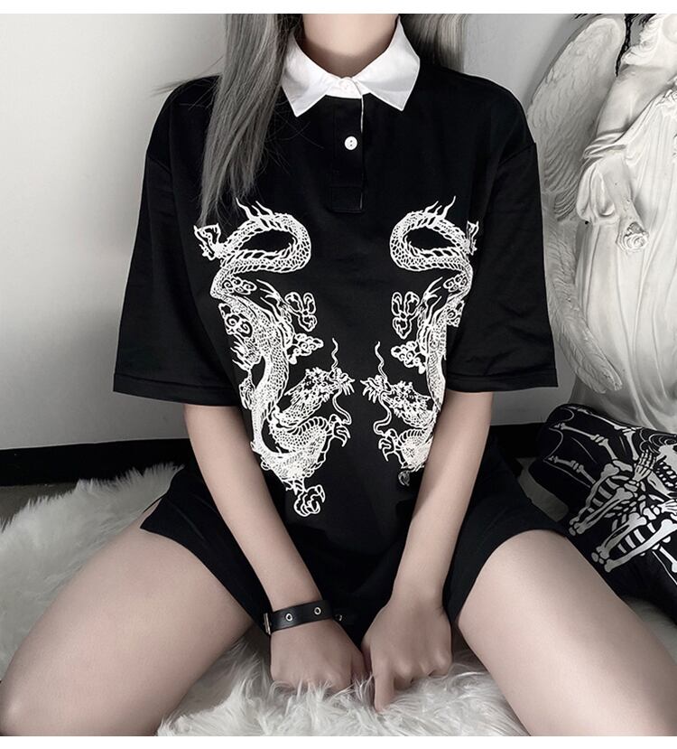 ✞✝✞ ダークブラックTシャツ シャツブラウスウィンターパターンプリント コットン 冬物 ✞✝✞ ゴスロリ SM ミリ 甘ロリ クラロリ 和ロリ エレガント 黒ロリ 姫ロリ 華ロリ AA-AA8241369