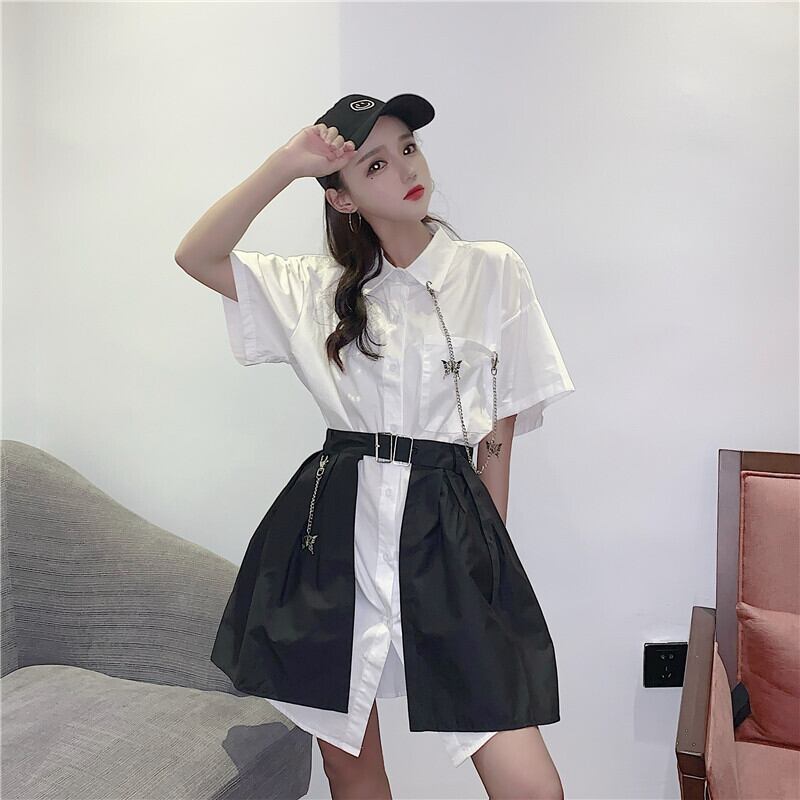✞ チェーン 半袖スリーブシャツブラウスワンピーススカート ダークきれいめ☆ ショート ✞ゴスロリ SM ミリ 甘ロリ クラロリ 和ロリ エレガント 黒ロリ 姫ロリ 華ロリ BB-BB6883923