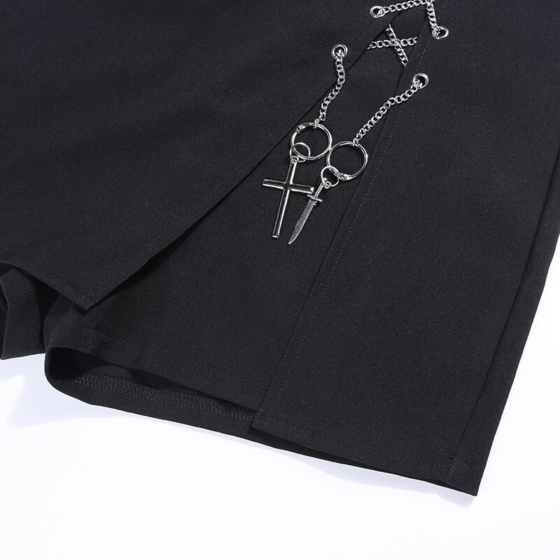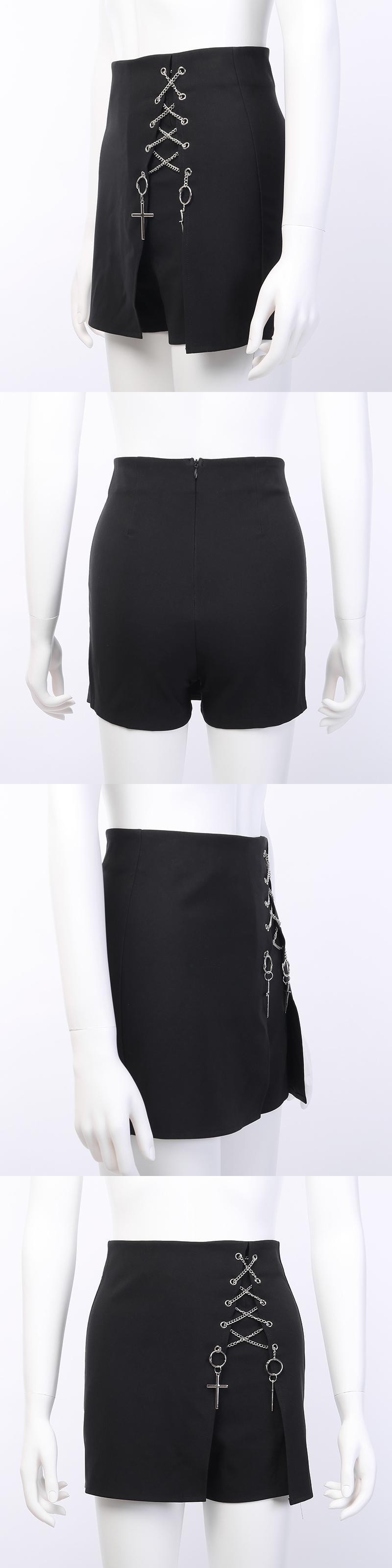 ✞✝✞ ダークきれいめ☆ショートパンツ スカート クロスブラックショートパンツ ペンダント ✞✝✞ ゴスロリ SM ミリ 甘ロリ クラロリ 和ロリ エレガント 黒ロリ 姫ロリ 華ロリ AA-AA0618914