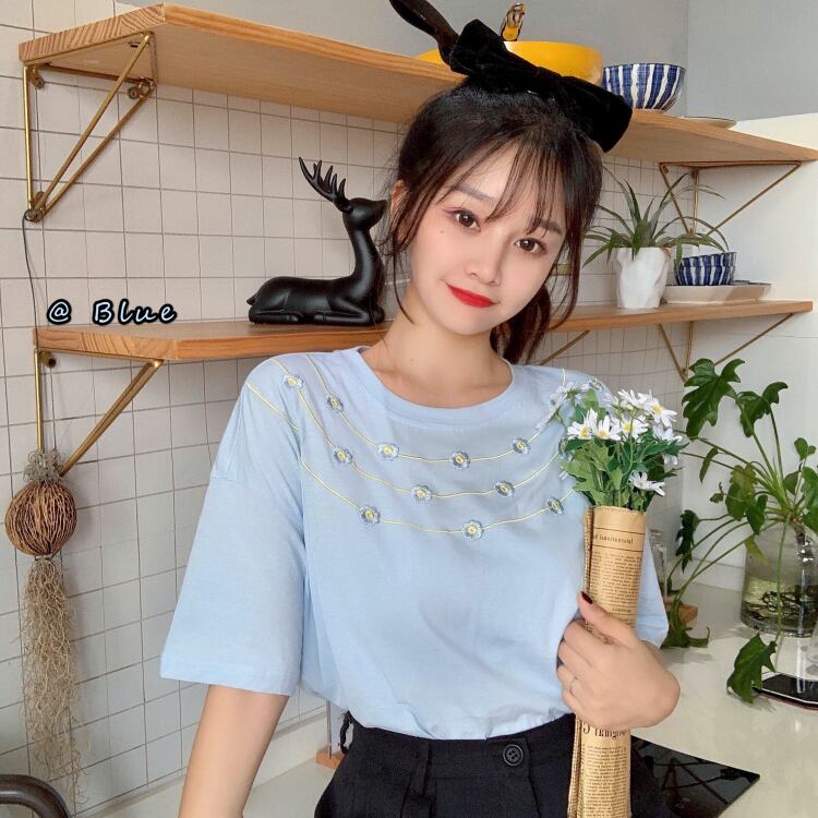 ✞ 刺繍Tシャツ シャツブラウスラウンドネック スウィート フラワーデザイン ✞ゴスロリ SM ミリ 甘ロリ クラロリ 和ロリ エレガント 黒ロリ 姫ロリ 華ロリ BB-BB3776203