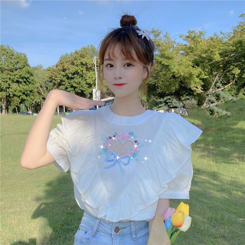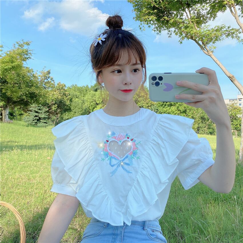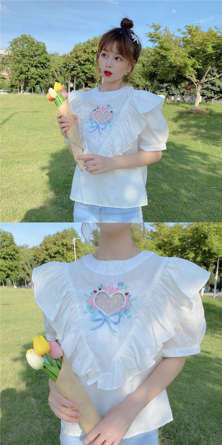 ✞ メッシュ刺繍ラッフルスリーブシャツブラウス スウィート ステッチ ✞ゴスロリ SM ミリ 甘ロリ クラロリ 和ロリ エレガント 黒ロリ 姫ロリ 華ロリ BB-BB4691373